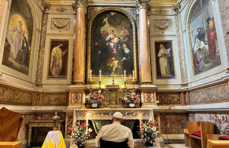 Lo rende noto la Sala Stampa della Santa Sede. Nell’uscire ha salutato i frati, le suore e i pellegrini presenti e ha poi fatto ritorno in Vaticano.