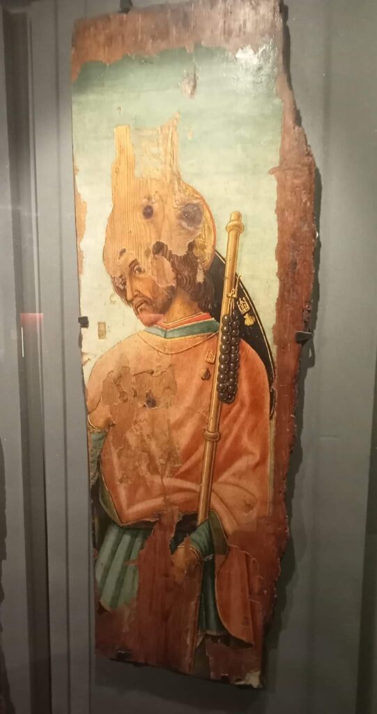 Di vero abbiamo il ritrovamento fortuito di queste due tavole di Vittore Crivelli, risalenti intorno al 1480 mirabilmente recuperate ed oggi esposte nel Museo Sistino collocato nella Chiesa di San Giovanni Battista sempre al Paese Alto di Grottammare.  Certamente si tratta di pale smembrate di un polittico scomparso, cioè di un quadro su legno composto da tanti quadri /pannelli lignei con Santi, realizzato con la tecnica della tempera all’uovo su tavola.