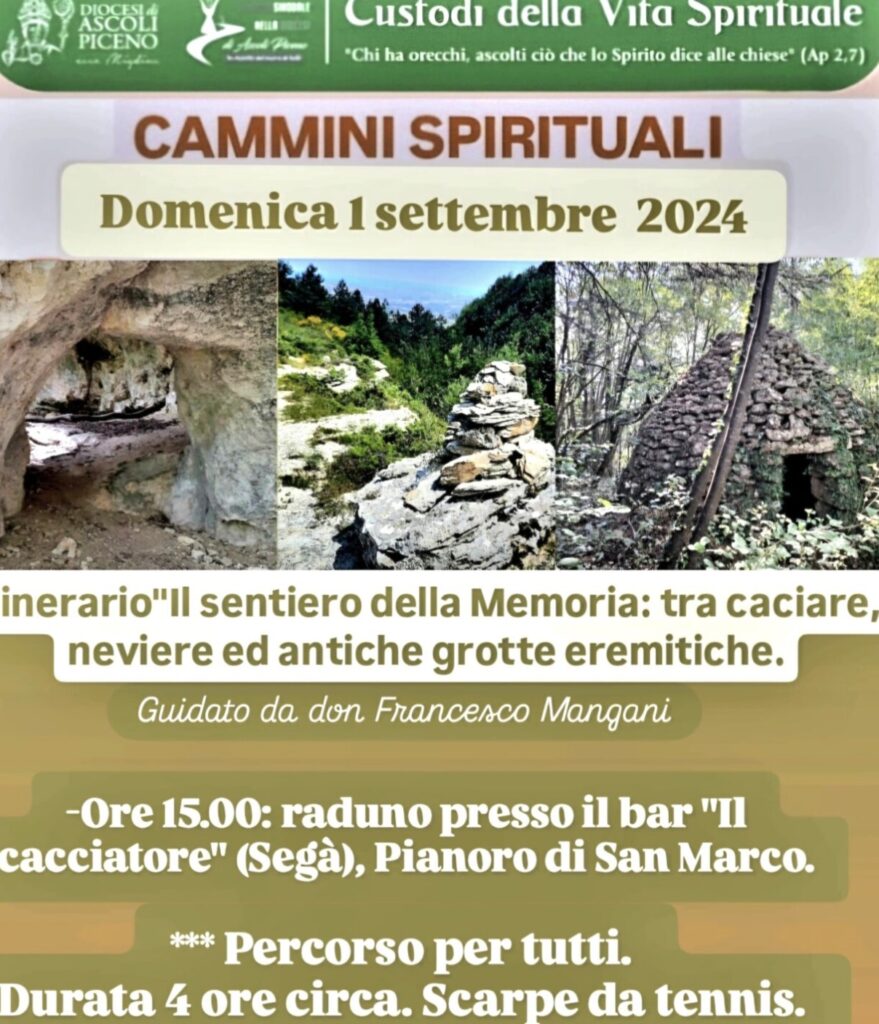 DIOCESI – La Diocesi di Ascoli Piceno, in collaborazione con gli “Amici della Montagna,” ti invita a partecipare al prossimo appuntamento dei Cammini Spirituali. Domenica 1 settembre 2024, avrai l’opportunità di vivere un’esperienza unica lungo il Sentiero della Memoria, un itinerario ricco di significato storico e spirituale.