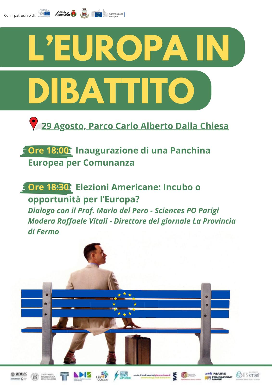 COMUNANZA – Oggi, giovedì 29 agosto, si terrà al Parco Carlo Alberto della Chiesa di Comunanza, dalle ore 18.00 alle ore 19.00, l’inaugurazione della “Panchina Europea” insieme al Movimento Federalista Europeo.