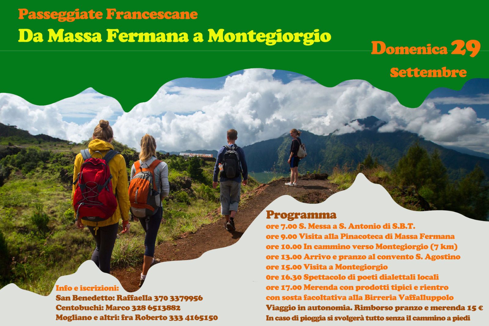 Vi aspettiamo numerosi, per passare insieme una domenica alla scoperta delle Marche, nella contemplazione e nella preghiera. In caso di pioggia si svolgerà tutto il programma, escluso il cammino a piedi. Non mancate!