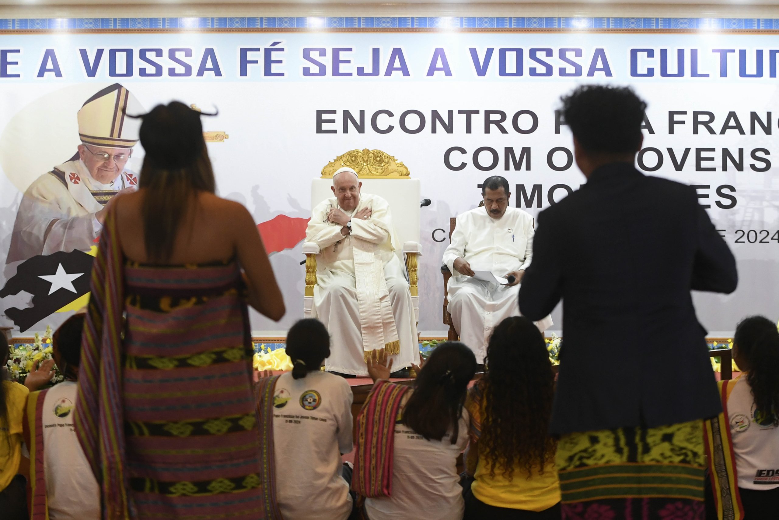 “Fate chiasso, fate confusione! rispettate e ascoltate gli anziani”. E’ il saluto del Papa ai giovani di Timor-Leste, incontrati a Dili prima di partire alla volta di Singapore, quarta e ultima tappa del suo viaggio in Asia e Oceania. “State attenti”, il monito da braccio di Francesco: “Perché arrivano quelli che si definiscono venditori di felicità. E ti vendono la droga, ti vendono tante cose che ti danno felicità per mezz’ora e basta”. “Libertà, impegno, fraternità”, ha chiesto il Papa ai giovani: “Per favore, d’ora in poi niente bullismo!”.