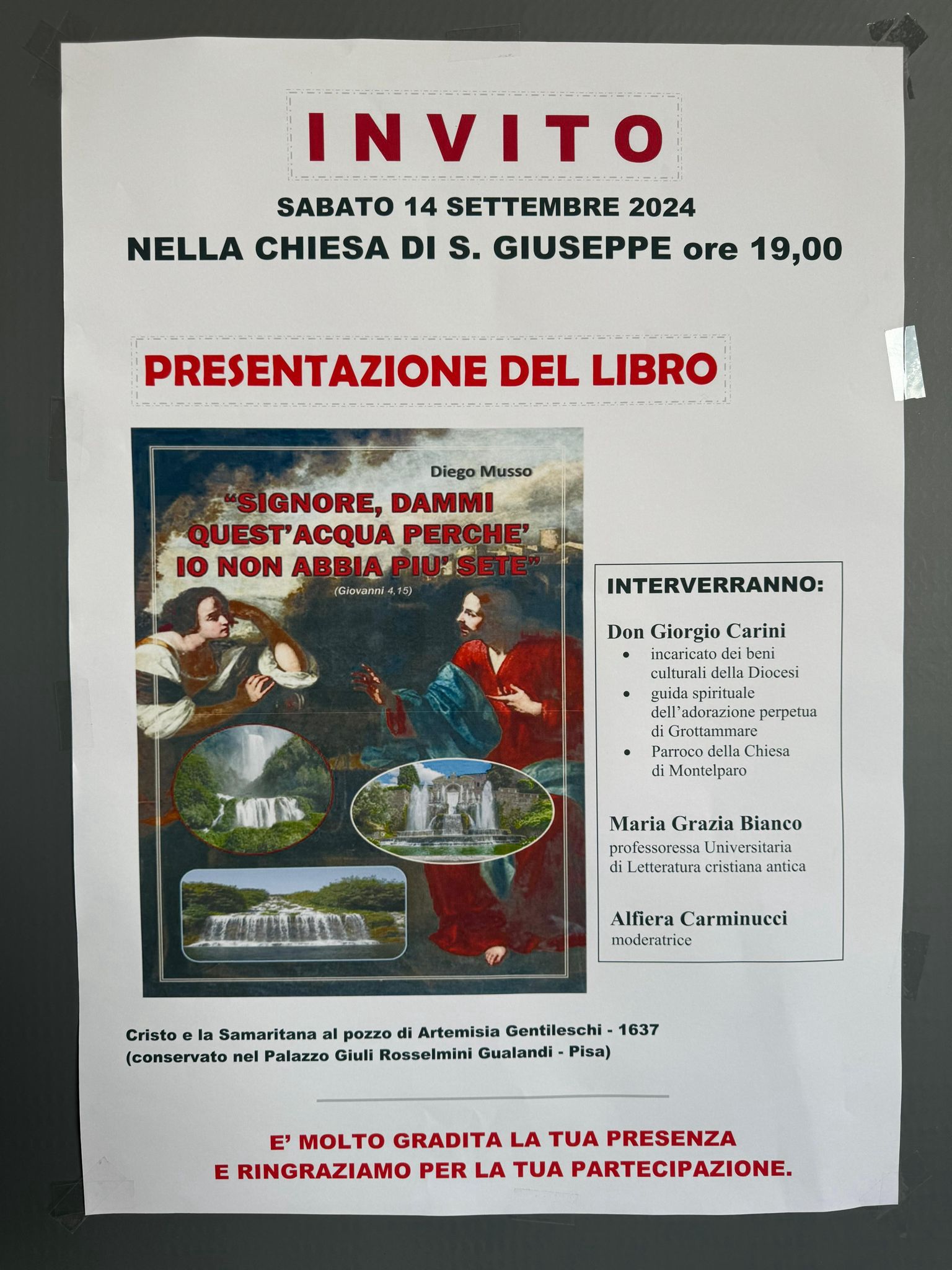 Che dire? Davvero un bel libro: ricco di fede, amore, conoscenza di fatti e luoghi santi. Non ci resta che ascoltare gli interventi di don Giorgio Carini e della prof.ssa Maria Grazia Bianco che presenteranno il libro di padre Diego sabato prossimo, 14 settembre 2024, alle 19 (dopo la Messa vespertina) presso la Chiesa di San Giuseppe a San Benedetto del Tronto.