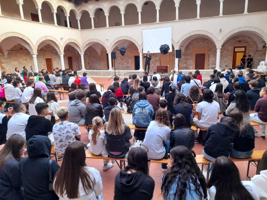 ASCOLI PICENO – “Spesso i ragazzi si presentano sui social in modo diverso da come sono nella vita reale: anche se si ritraggono in forma e felici, in realtà si sentono soli e tristi. Questa è un’età in cui si ha il fuoco dentro, eppure spesso questo fuoco appare spento. Perché? Come si spegne il fuoco? Con una secchiata d’acqua, no?! Ecco, lo stesso succede a noi. A volte la vita ci lancia una secchiata d’acqua che rischia di spegnere il nostro fuoco. Può succedere che perdiamo una persona cara o magari subiamo una bocciatura oppure arriva un terremoto che porta via case e persone. Il fuoco poi si spegne anche quando manca l’ossigeno. Avete mai visto l’esperimento di spegnere una candela coprendone la fiamma? Terminando l’ossigeno, la fiamma si spegne. Succede così anche per noi, quando ci manca l’ossigeno, quando ci sentiamo asfissiati. A volte può succedere di avere genitori asfissianti, che stanno troppo addosso, che controllano tutto o vogliono che tu faccia quello che vogliono loro, a prescindere dalle tue passioni. Altre volte può succedere di vivere in una classe asfissiante: quando i compagni ti bullizzano, non ti considerano affatto, ti saltano addosso e ti parlano sopra, oppure quando ti giudicano e ti lasciano da parte, accade che ti manca l’aria, che ti senti più stretto. Di fronte a queste situazioni della vita, succede che cambiano le relazioni, cambiamo noi, o meglio, siamo sempre noi, ma più spenti, più tristi, senza energia, senza voglia di vivere, senza la capacità di ribellarci e di tirare fuori il fuoco. Come facciamo invece a mantenere acceso il fuoco che abbiamo dentro?“.