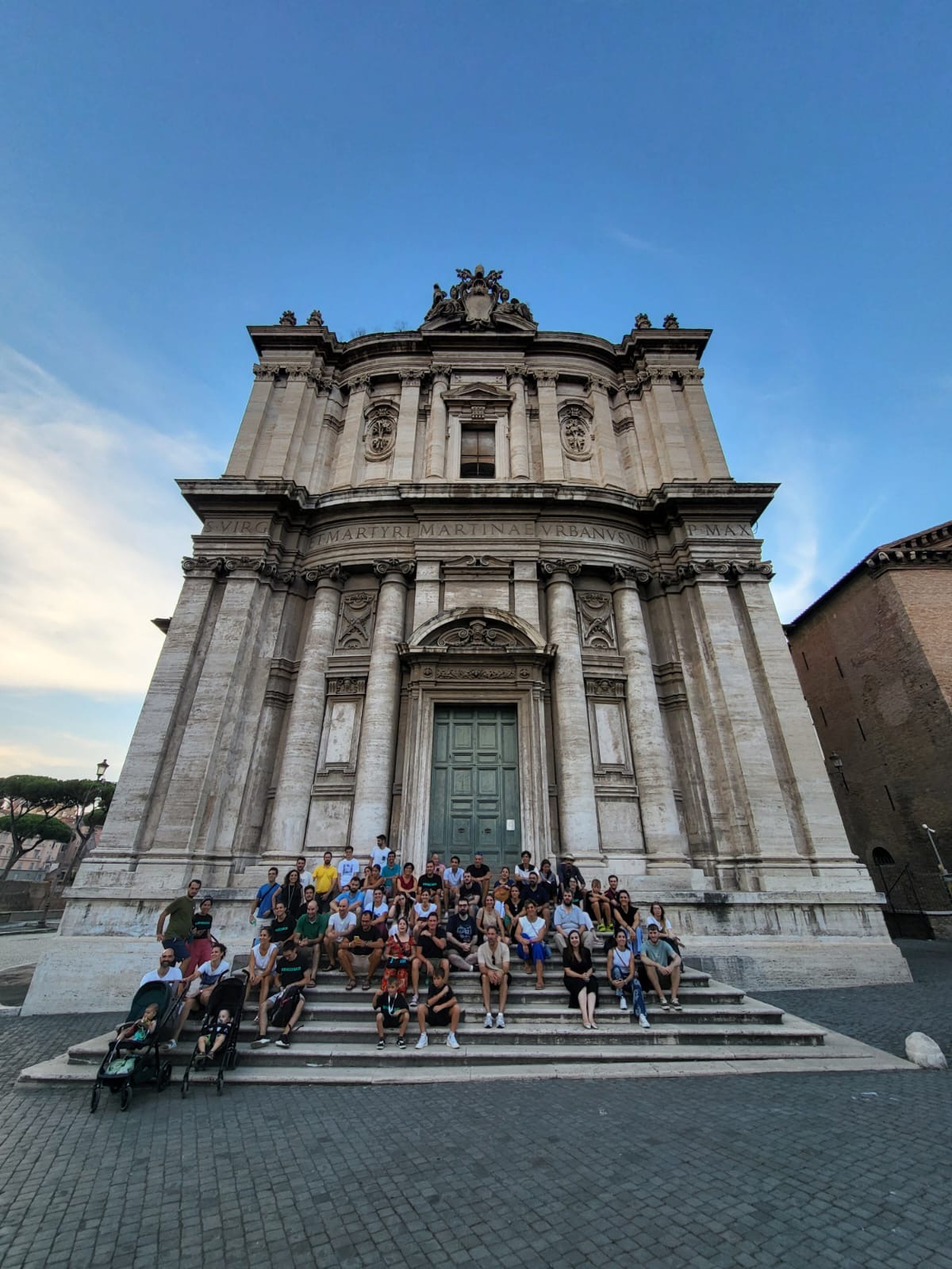 L’intervento introduttivo di don Epicoco è stato molto bello perché ha invitato a uscire dal guscio, a spendersi partendo dal proprio territorio.È stato un momento molto forte il tour di sabato sera al centro di Roma con tappe in alcuni luoghi significativi dove è stata data la vita.La prima tappa è stata al Carcere Mamertino abbiamo raccontato la storia dei santi Pietro e Paolo, due martiri che hanno dato la vita a Roma e hanno scompaginato la stagnazione dell’impero romano, infatti grazie ai cristiani è cambiata la storia dell’impero. Poi siamo passati davanti al santuario di Santa Francesca Romana, al monastero di Tor de’ Specchi, e abbiamo parlato di un’altra persona che ha dato la vita a livello di impegno politico, perché, pur essendo nata da una famiglia abbiente e pur essendo stata costretta a sposare il marito, si occupava dei poveri, andava a regalare il grano, si occupava dei malati. Poi siamo andati a piazza Navona dove abbiamo visitato la cripta di Sant’Agnese in Agone: anche qui la storia di una bambina che ha dato la vita pur di non scendere a mediazioni con il potere temporale, poi siamo andati al Parlamento e abbiamo fatto una preghiera lunga per i nostri politici, perché al di là del nostro essere chiamati a una partecipazione e al nostro essere un pungolo, è importante ricordare che siamo chiamati anche a pregare per i nostri politici, ma lo facciamo raramente: è stato un momento particolare perché non capita di vedere tutti i giorni 80 persone che pregano sotto il Parlamento; è stato un modo per ricordarci non solo che la preghiera ha una sua forza, ma che c’è anche questo da fare, pregare per i politici. Abbiamo finito il tour a via Caetani, dove abbiamo ascoltato la telefonata dei brigatisti a Francesco Tritto che annunciava la morte di Aldo Moro e precisava il luogo dove avrebbe potuto essere ritrovato il corpo: è stata l’occasione per approfondire la figura di Moro.