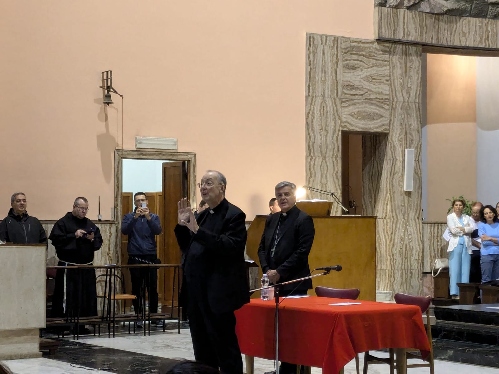 Di fronte a una platea estremamente numerosa, monsignor Frisina ha approfondito la spiritualità tipicamente francescana, soffermandosi sulle tappe principali del suo cammino di fede e sulle molte analogie che legano il percorso di Francesco a quello del Cristo.
