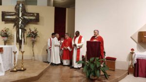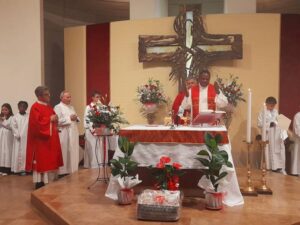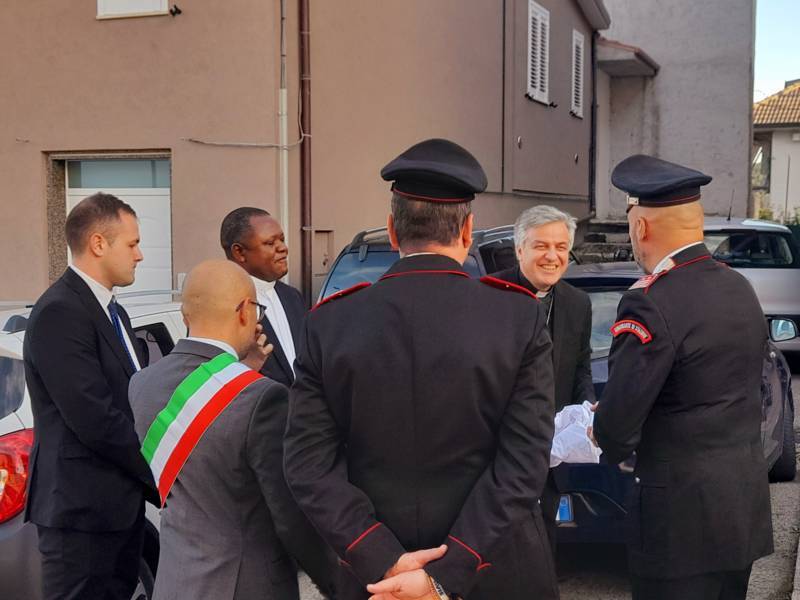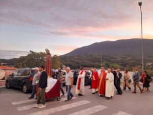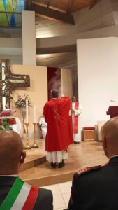 FOLIGNANO – “È una bella tradizione quella di ricordare ed onorare un Patrono, ma la memoria migliore è quella di chi vive innanzitutto la spiritualità del Santo e poi, dopo averla vissuta, la tramuta ai figli e ai giovani”. – Si è aperta con queste parole del parroco don Joseph Katembwe la Celebrazione Eucaristica presieduta dall’arcivescovo Gianpiero Palmieri Domenica 15 Settembre 2024, alle ore 18:00, presso la chiesa San Gennaro in Folignano in occasione della festa del Santo Patrono. La Santa Messa, concelebrata dal parroco don Joseph Katembwe, dal diacono Rinaldo De Angelis e da tutti i fedeli convenuti, ha registrato la partecipazione anche delle massime autorità civili e militari locali: presenti, infatti, il primo cittadino Matteo Terrani, l’assessore Costantino Nepi, la consigliera Eleonora Ritrecina, il comandante della Stazione dei Carabinieri Villa Pigna di Folignano, il luogotenente Alessandro Giorgione, e il brigadiere Domenico Masciocchi.