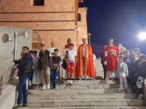 “Nel brano che abbiamo ascoltato – ha proseguito mons. Palmieri – c’è una domanda, che divide a metà il Vangelo: «La gente, chi dice che io sia?» (Mc 8,27). Dopo le parole di Pietro, che gli dice «Tu sei il Cristo» (Mc 8,29), Gesù si dirige verso Gerusalemme e smette di parlare alle folle, senza quasi fare più per niente gesti miracolosi; si ferma a parlare solo ai discepoli, spiegando loro che il Messia morirà e raccomandando loro di rimanere uniti, di vivere la fraternità e il perdono. Sono queste forse le pagine più tenere del Vangelo, in cui Gesù dà ai suoi discepoli tante consegne prima di affrontare la morte e li prepara, spiegandone il senso, agli eventi che lo attendono: la croce, la morte, il fatto che non scenderà dalla croce e il fatto che il Padre che rimarrà in silenzio. Gesù spiega che il Messia realizzerà il Regno non salvando la pelle, ma donando la vita. Ovviamente Pietro, che è il principe delle gaffe, non comprende e rimprovera aspramente Gesù, perché crede che il re sia quello che siede sul trono, che comanda. Ma Gesù usa parole dure, molto dure: ‘Pietro, tu non sei più Pietro, perché ragioni come gli uomini e non come Dio. Pietro, tu che ti stai comportando come Satana, viene dietro di me. Tu sei chiamato a vivere il discepolato dietro di me e di comprendere quali sono i piani di Dio. Quando tu ragioni in maniera troppo umana, stai andando contro i pensieri di Dio che sono diversi dai tuoi’. Ci fa bene masticare questa Parola! Quello che Dio ha in mente io sono chiamato a scoprirlo. Quello che Dio vuole dalla nostra comunità siamo chiamati a discernerlo. Certamente non ci viene spontaneo ragionare come Gesù, ma camminando con Lui, solo con l’aiuto dello Spirito Santo, solo con l’aiuto della Parola di Dio – letta e meditata -, possiamo farlo. E questo siamo chiamati a fare”.