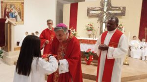 Il vescovo Gianpiero ha infine concluso: Gesù dice ai suoi anche un’altra cosa importante, che chi perde la vita la ritrova. Più dai, più ti dai, più tu esisti. Oggi ricordiamo San Gennaro. Sapete qual è il segreto che il vostro patrono ha capito? Così come tutti i martiri, Gennaro ha compreso che chi segue Gesù fino in fondo, trova la vita vera, mentre chi pensa di salvare in qualche maniera se stesso e non è capace di andare fino in fondo per amore, si ritrova con un pugno di mosche. Gennaro ha compreso bene questa lezione grande del Vangelo, quindi non è fuggito, non si è ritirato, ha continuato a fare il vescovo del suo popolo. E, anche si è trattato di morire, Gennaro è andato fino in fondo, donando il sangue, quel sangue che è talmente pieno di vita che misteriosamente si rinnova, si rivitalizza ogni volta. Al di là del miracolo, comprendiamo bene il simbolo del sangue che diventa nuovamente vivo e dona la vita: chi si spende è infatti più vivo che mai. Questo è l’esempio dei Santi e di tante persone che seguono Gesù fino in fondo e si ritrovano una vita piena.