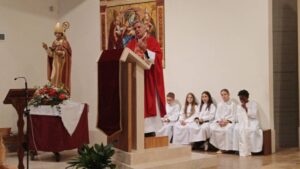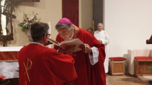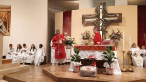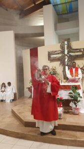 Dopo la lettura del Vangelo del giorno (Mc 8,27-35) da parte del diacono Rinaldo, riguardante il celebre momento in cui Gesù chiede ai suoi discepoli «La gente, chi dice che io sia?», il vescovo Gianpiero lo ha commentato con queste parole: “Il Vangelo di oggi ci ricorda quel momento della vita di Gesù in cui Egli si trova di fronte ad un bivio. Da un lato può decidere di smettere di parlare alle folle, smettere di fare segni e gesti che sono quelli del Messia che Israele attende e quindi ritirarsi a vita privata. Dall’altro, invece, può andare fino in fondo, vivere la propria messianicità entrando a Gerusalemme nella consapevolezza di andare incontro alla morte. Ormai il sinedrio, infatti, ha già deciso la sua morte. Sembra dire: ‘Questo Gesù contraddice la nostra religione e la nostra tradizione. Interpreta la legge di Israele in un modo che noi non possiamo sopportare. La sua misericordia, la sua mitezza, ci è semplicemente insopportabile. La libertà, per cui l’uomo viene prima della legge, è insopportabile. Per questo abbiamo deciso di eliminarlo!’. E Gesù sceglie la seconda via, punta dritto verso Gerusalemme. E spiega che il Messia che Dio dona, non è un politico, un sovrano potente che scaccia i nemici romani dal suolo di Israele. Il Messia che Dio ha promesso, è un re mite, che è venuto a portare nel mondo un Regno che coinvolge gli uomini di tutto il mondo, un Regno di pace, di giustizia, in cui ogni uomo scopre una propria dignità. E quindi tutti possono anticipare il sogno di Dio, che è quello della fraternità universale. Tutto terribilmente diverso da quello che Israele voleva! Eppure Gesù decide affrontare il suo destino. Nella Bibbia c’è spesso questa convinzione che il giusto possa soffrire per uno, due giorni, ma il terzo Dio lo aiuterà. Perciò anche Gesù ha questa convinzione: comprende che, se anche dovrà abbracciare la morte, è sicuro che il Padre gli restituirà vita”.