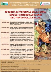MARCHE – La Conferenza episcopale marchigiana, l’Istituto Teologico Marchigiano in collaborazione con la Pastorale della Salute Ufficio Regione Marche, promuovono il corso di «Teologia e pastorale della cura: dialoghi interdisciplinari nel mondo della salute». Gli appuntamenti si terranno presso il Pontificio Seminario Regionale di Ancona, situato in via Monte D’Ago 87, dalle 8.30 alle 12.
