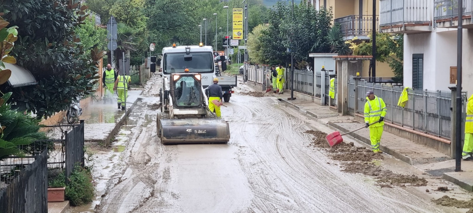 In queste ore personale di Polizia Locale, Picenambiente, Volontari di Protezione civile sono all’opera per la rimozione del fango e l’assistenza ai cittadini in difficoltà, principalmente nella zona di via Montagna dei Fiori.