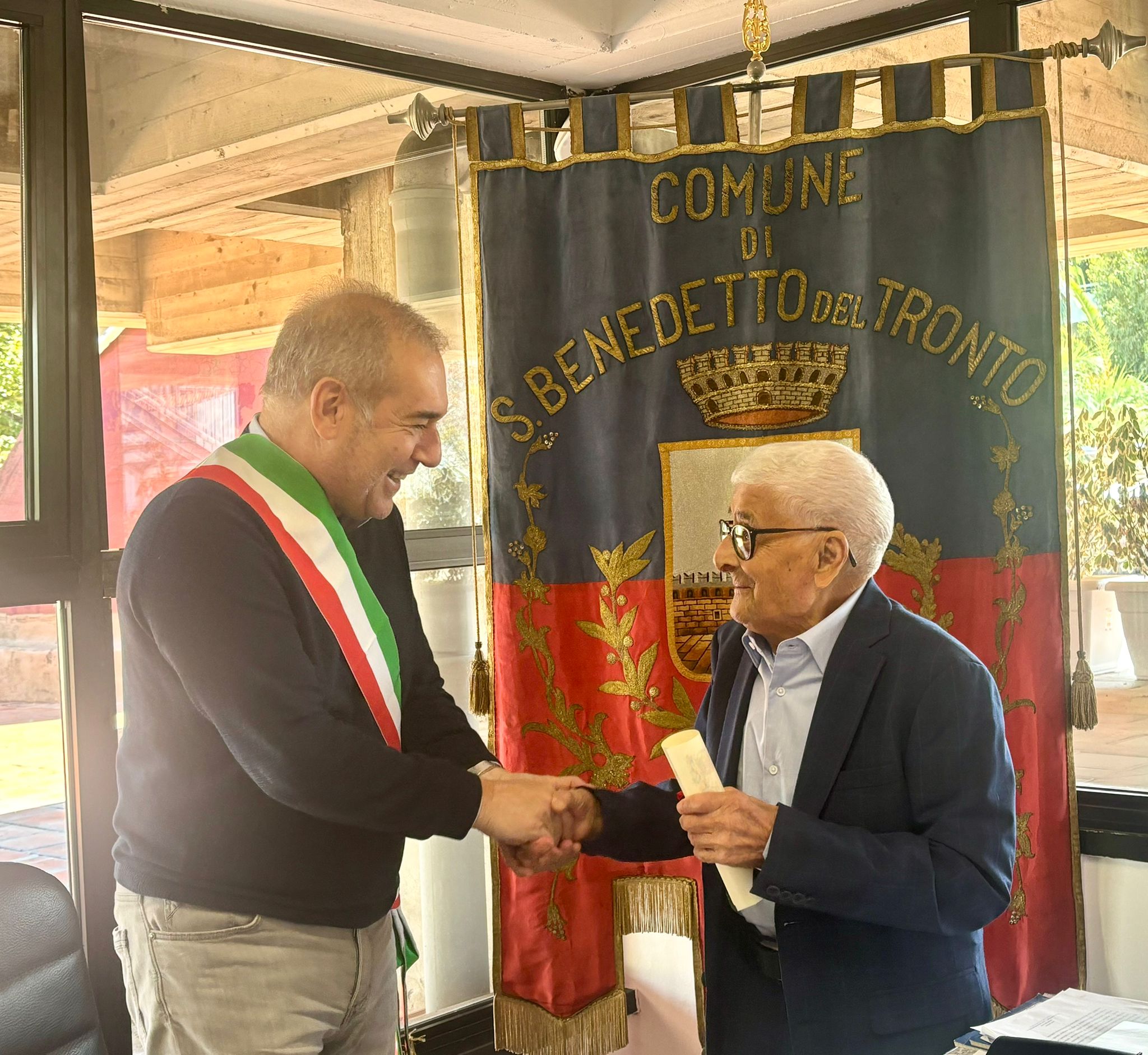 SAN BENEDETTO DEL TRONTO – Guerrino Re è stato ricevuto in Municipio dal sindaco Antonio Spazzafumo nel giorno del suo centesimo compleanno che festeggia in buona salute fisica e mentale.