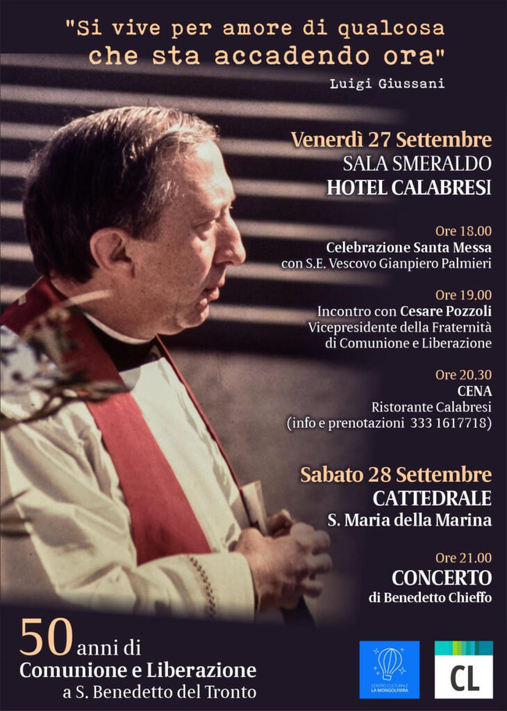 SAN BENEDETTO DEL TRONTO – Il movimento di Comunione e Liberazione compie 50 anni della sua presenza nella Diocesi di San Benedetto del Tronto e, per tale motivo, promuove due giornate di incontri e momenti di riflessione, che intendono mostrare come l’esperienza di CL sia viva e presente nella realtà diocesana.