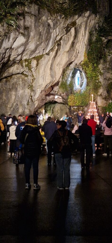 La bellezza della conclusione è stata particolarmente sentita dal nostro gruppo della diocesi di San Benedetto del Tronto, quando alle 22.00 ci siamo riuniti per recitare l’ultimo Rosario. Eravamo davanti alla grotta, oltre il fiume, e abbiamo meditato sui misteri dolorosi. Io stesso ho aiutato nella riflessione. Questo Rosario notturno, recitato davanti alla bianca immagine della Madonna nella grotta di Massabielle, è stato un momento toccante in cui abbiamo potuto esprimere tutto il nostro affetto, i nostri sentimenti e anche i nostri propositi e le richieste finali.
