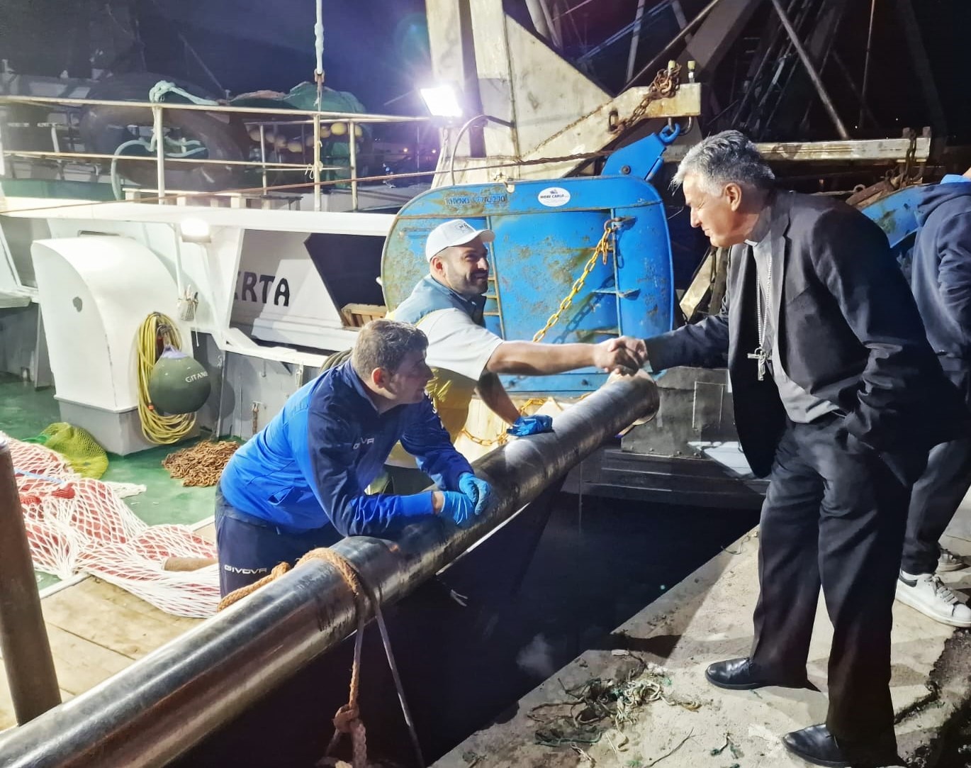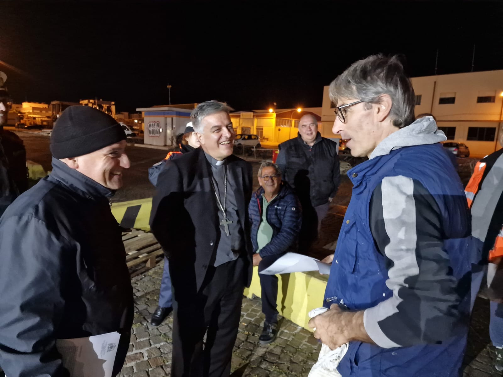 Il Vescovo Palmieri, poco prima della mezzanotte, ha condiviso, attraverso il suo messaggio, alcune riflessioni sul lavoro della pesca, evidenziando le crescenti difficoltà del settore: «Il vostro lavoro è sempre più “concentrato”: alcuni giorni sì e altri no, alcune zone di mare sì e altre no, con pochi membri di equipaggio e non tutti quelli di cui ci sarebbe bisogno».