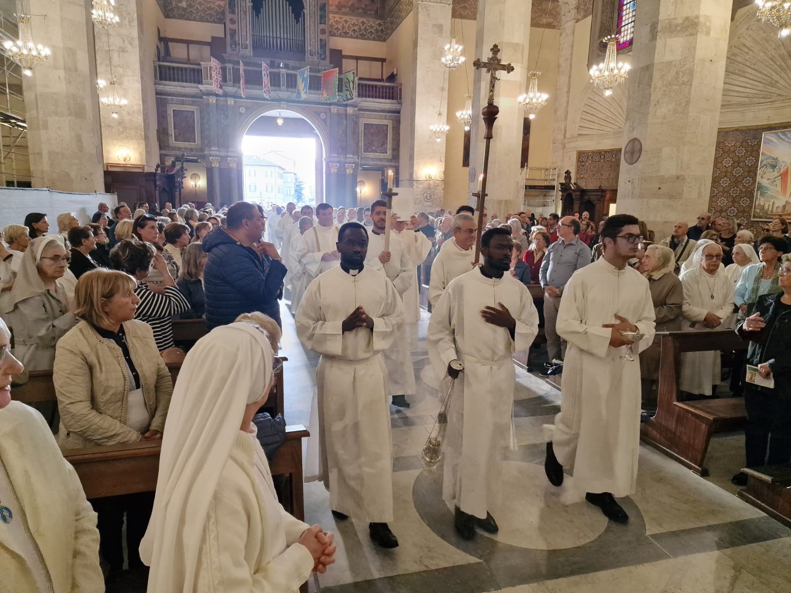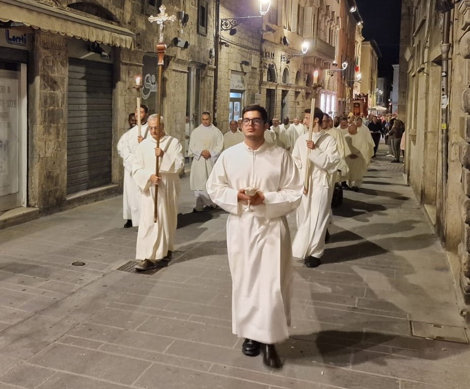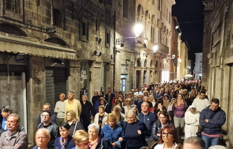 Al termine della Celebrazione Eucaristica, animata dal Coro Diocesano diretto dal M° don Francesco Fulvi, si è svolta la tradizionale processione per le vie del centro cittadino, animata dal diacono Giuseppe Puglia e da Marika Fioravanti dell’Equipe Sinodale Diocesana, tramite la lettura di alcuni scritti di Etty Hillesum, selezionati da don Matteo Mantenuto.