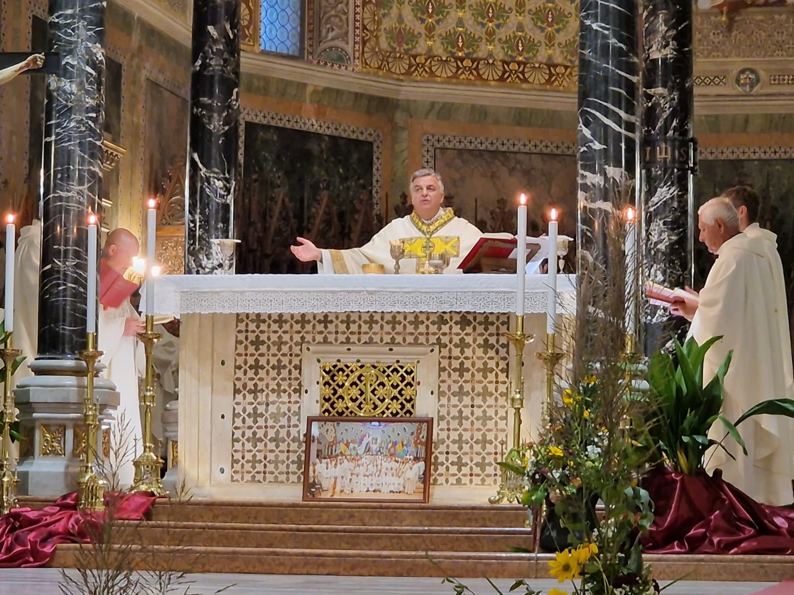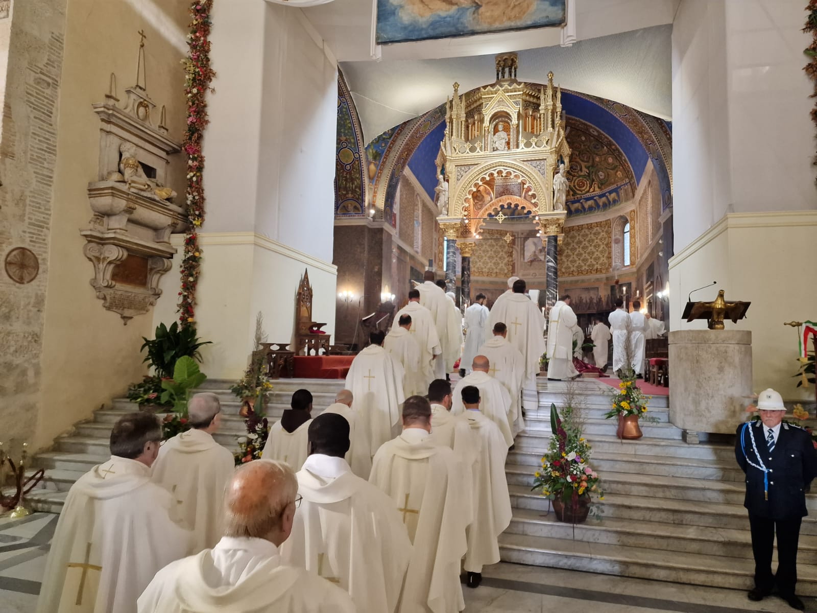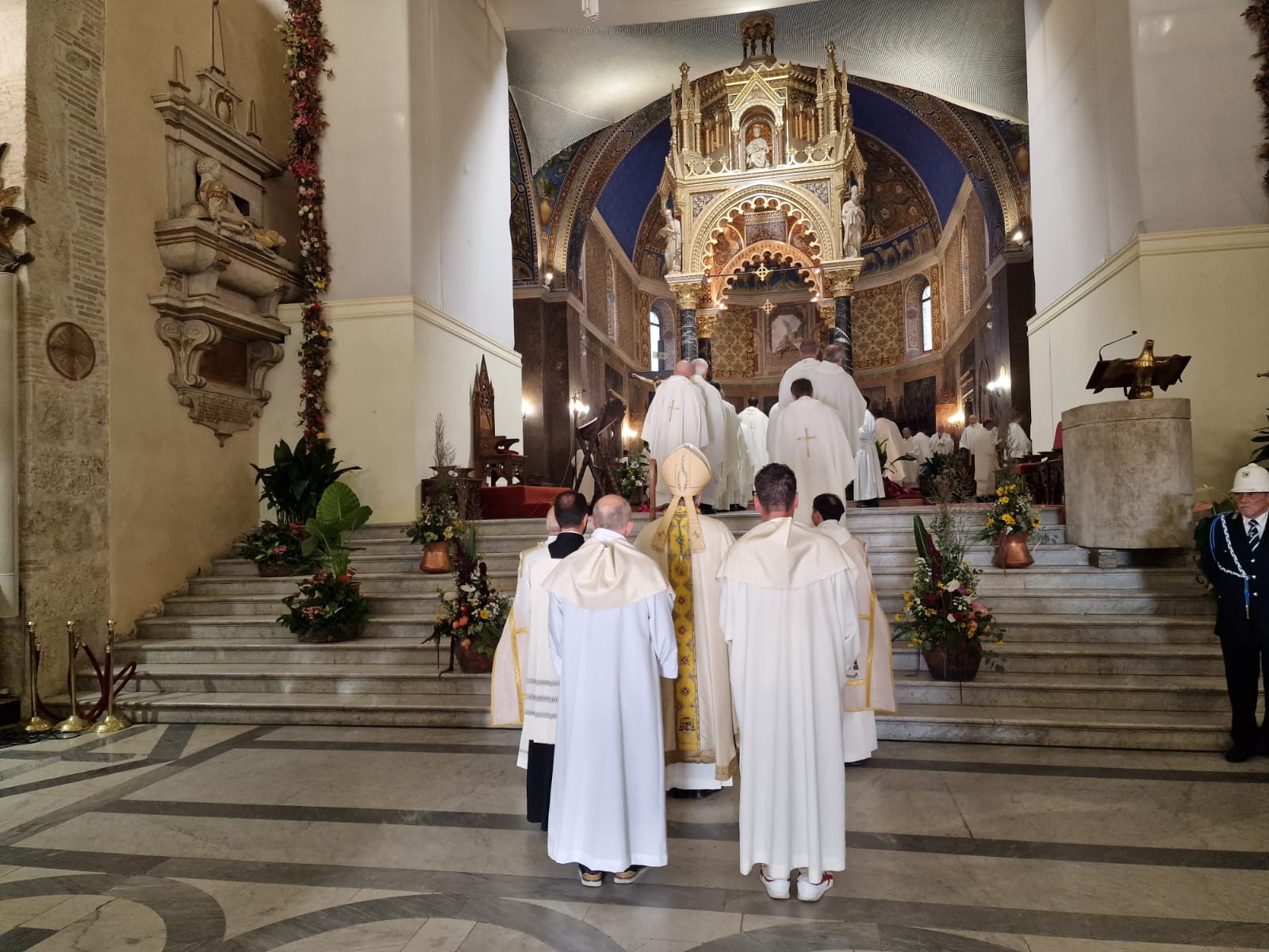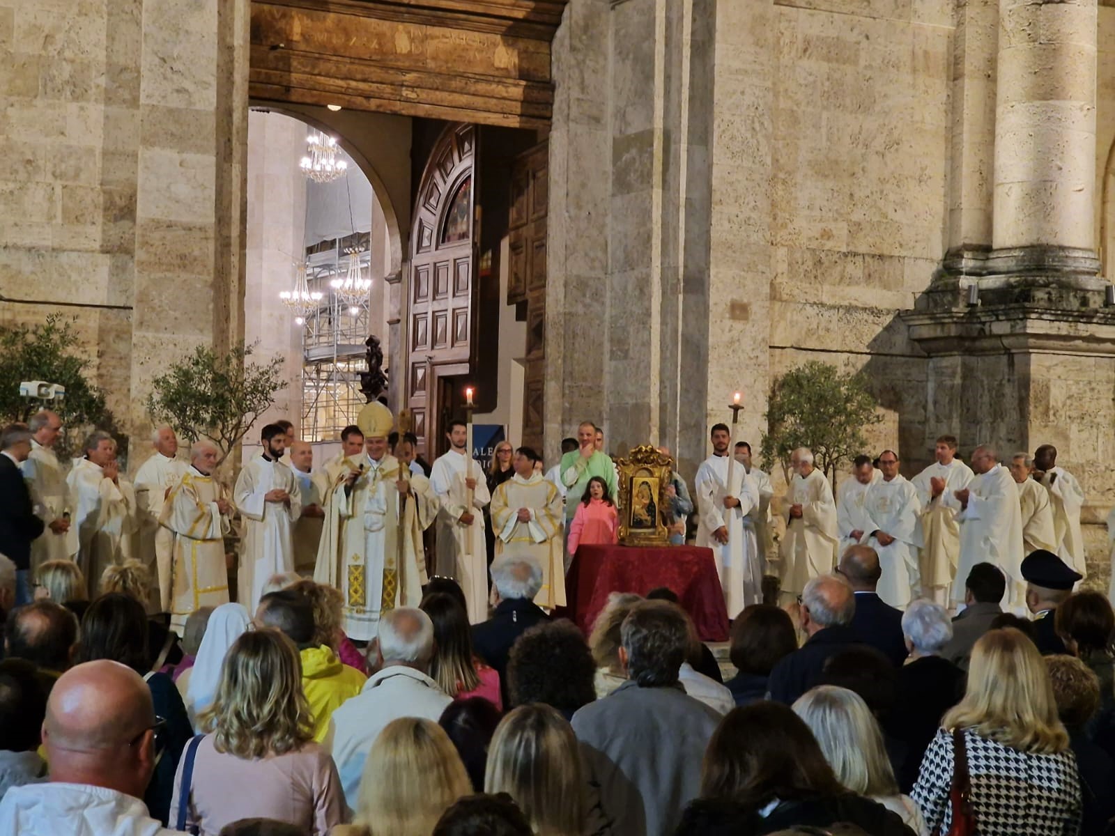 Dopo la settimana mariana di preghiera, fatta in preparazione alla ricorrenza, il culmine dei festeggiamenti è avvenuto Domenica 29 Settembre 2024, alle ore 18:00, con la solenne Messa pontificale presieduta dall’arcivescovo Gianpiero Palmieri e concelebrata da don Nunzio Lucidi, vicario episcopale per l’Amministrazione della Diocesi di Ascoli Piceno, don Davide Tisato, nuovo rettore del Seminario Redemptoris Mater di Ascoli Piceno e Macerata, don Luigi Nardi, parroco del Duomo, don Lino Arcangeli, cancelliere diocesano, don Gianmarco Lupini, cerimoniere diocesano, don Orlando Crocetti, parroco di San Giovanni Evangelista, dai diaconi Luca Antonini e Mario Sirocchi e da tanti altri sacerdoti e diaconi permanenti della Diocesi. Il servizio liturgico è stato curato dai seminaristi del Seminario Redemptoris Mater di Ascoli Piceno.