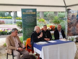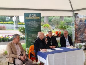 A spiegare il tema della Giornata, “L’Ecologia Integrale, Cura per l’altro e cura della terra. Spera ed agisci con il Creato”, è stato il vescovo Gianpiero Palmieri, il quale, rivolgendosi soprattutto ai giovani studenti presenti, ha spiegato: «L’enciclica “Laudato si’“ di papa Francesco ha suscitato molto interesse negli ultimi dieci anni. Ovunque andiate, è così: non soltanto negli ambienti parrocchiali, ma anche nelle università e nei centri culturali. Il nostro Pontefice ha scritto molti testi, ma perché proprio questo è piaciuto tanto ed ha coinvolto tanto? Perché ha segnato una svolta. Prima di questo testo, infatti, quando si parlava di ecologia, si intendevano soltanto tutte le questioni inerenti l’ambiente e riguardavano sempre una nicchia. In molti Paesi europei c’erano anche dei partiti politici, che in genere si chiamavano Verdi, che coltivavano questa visione, ma erano sempre tra loro a discuterne. Quando è uscita l’enciclica “Laudato si’” ed è stata diffusa, ci si è resi conto che questo testo del papa intercettava una sensibilità che stava crescendo sempre di più e che non riguardava più soltanto alcuni, ma tutti. Ecco che questo spiega il grande successo di questa enciclica! Qual è l’idea di fondo? Che siamo tutti legati. Non puoi risolvere i problemi dell’ambiente, senza risolvere i problemi di relazione tra i popoli e le persone. Non puoi risolvere né gli uni né gli altri, se non fai un lavoro di ecologia del tuo mondo interiore. Questi tre livelli sono pienissimi, legati l’uno all’altro. Vogliamo custodire l’ambiente, evitare che si rovini, che i cambiamenti climatici non ci rovinino più la vita? Va bene, ma non possiamo farlo senza risolvere i problemi delle disuguaglianze sociali. Non è possibile. Faccio un esempio. Se tu proponi di risolvere le emissione del gas serra cambiando la produzione, Paesi come l’India e la Cina ti dicono che non sono d’accordo. Ci direbbero: “Voi, che fino a poco tempo fa avete goduto di certi materiali, adesso vorreste impedire a noi di svilupparli?!”. Allora capite che non si può risolvere questo problema, senza garantire giustizia sociale. E non si può fare né l’uno né l’altro, se nel nostro mondo interiore non facciamo una sorta di pulizia, cioè se non mettiamo da parte il risentimento, la rabbia, l’odio e non cerchiamo invece di lavorare per una comprensione reciproca gli uni degli altri. Pensate purtroppo a come tante volte vengano trattate le persone che hanno una qualche forma di disabilità . Veramente vengono trattati come persone, come uomini, come cittadini di serie B. Questo davvero è molto triste. Dunque lavorare per l’ecologia integrale significa tenere insieme tutti questi livelli. Questa è la grande intuizione di questa enciclica di papa Francesco. Io credo allora che facciamo bene a lavorare insieme, ad andare avanti, a preoccuparci di tutte queste cose e a far crescere la sensibilità di tutti».