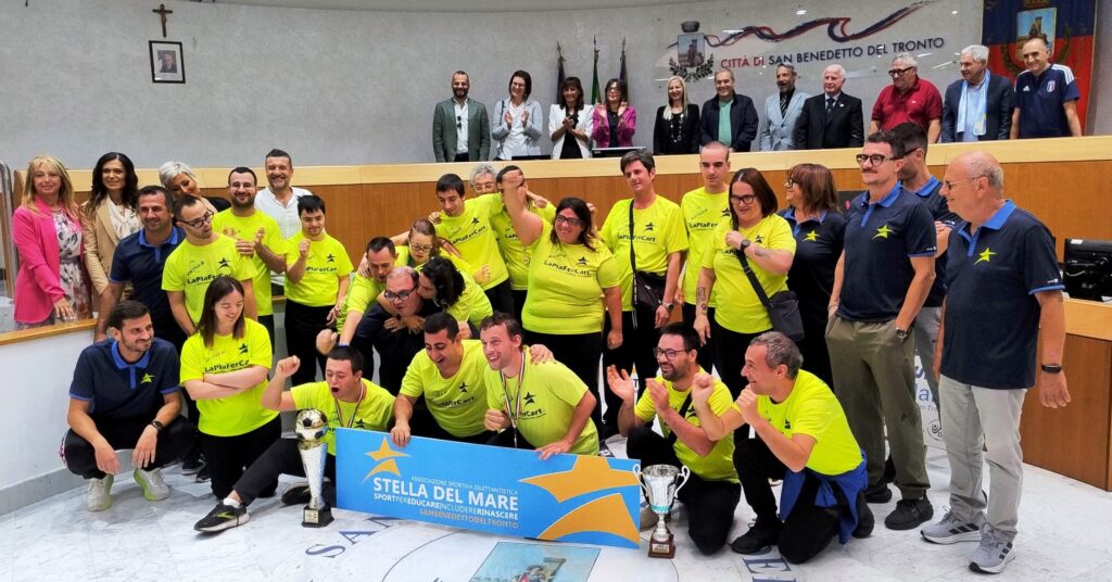 SAN BENEDETTO DEL TRONTO – Grande festa al Comune di San Benedetto per l’Asd Stella del Mare, che ha ottenuto l’accreditamento come Centro di Avviamento allo Sport Paralimpico, un riconoscimento di grande importanza che la rende l’unica società nelle Marche a fregiarsi di tale titolo. La presidentessa Claudia De Laurentis e il direttore generale Roberto Ciferni hanno espresso la loro soddisfazione durante una conferenza stampa molto partecipata, alla quale hanno preso parte importanti figure istituzionali e del mondo sportivo.