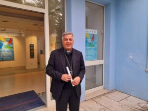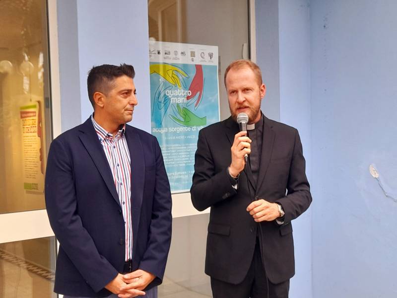 L’acqua rimanda alla nostra dimensione spirituale. Proprio nei giorni scorsi abbiamo celebrato il patrono d’Italia, San Francesco d’Assisi, che nel suo Cantico richiama questa esperienza spirituale in tutti gli elementi della natura, tra i quali l’acqua ha un posto privilegiato. Ma l’elemento dell’acqua ci rimanda anche a tante sensibilità e a tante situazioni di vita concreta che ciascuno di noi ha condiviso dalla sua infanzia fino ad oggi. Probabilmente nel futuro ci sarà una serie di contributi anche su altri temi, ma iniziare dall’acqua in una città di mare mi sembra una trovata intelligente, perché sicuramente è un elemento che fa parte di noi e può quindi comunicare qualcosa a ciascuno di noi . Descriverlo nel linguaggio dei ragazzi e degli artisti che hanno cercato di mettersi in comunione è assolutamente il valore aggiunto di questa mostra. La nostra presenza qui vuole essere di plauso e di gratitudine a chi, in una maniera o in un’altra, ha contribuito a realizzare questa rassegna.