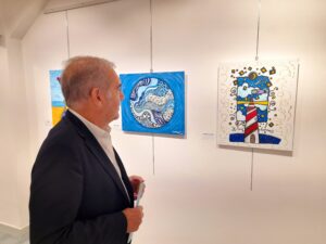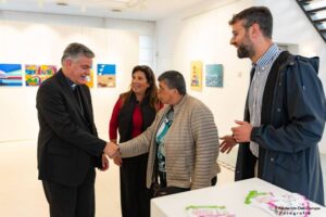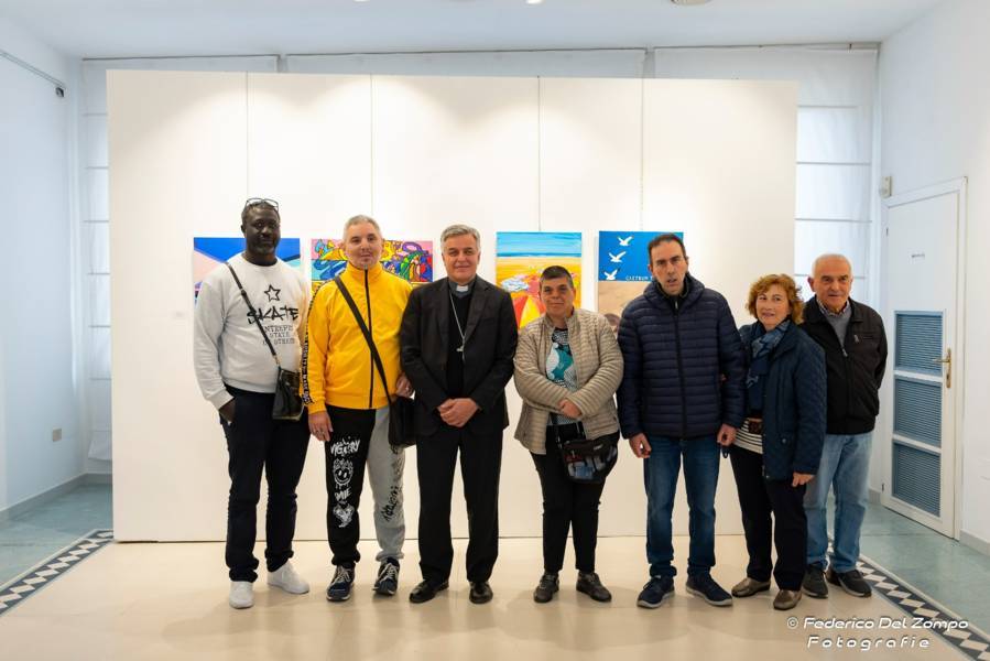 Ringrazio tutti per la bellezza di questa mostra. L’aver capito che tutte le persone hanno la capacità di espressione artistica è fondamentale. Noi siamo abituati a classificare le opere d’arte sulla base del loro autore o della scuola di appartenenza. Invece l’arte in senso ampio è ogni manifestazione umana capace di toccare il cuore di un altro uomo. Si tratta di arte, quando, guardando quell’opera, ci si rende conto che contiene una scintilla, che non corrisponde necessariamente alla bellezza estetica, bensì è una scintilla che potremmo definire spirituale, che si comunica da cuore a cuore. Io guardo un quadro e sento che ha qualcosa da dire, non importa se di bello o di brutto, quel che importa è che risvegli qualcosa che c’è in noi. L’aver messo sullo stesso piano un’opera di un ragazzo del Centro e quella di un artista riconosciuto, significa esplorare talvolta due mondi che hanno in comune il tema, ma sono molto diversi. Guardando la mostra, gli occhi vanno da una parte all’altra alla ricerca di ciò che accomuna, però certe volte il contrasto è molto forte tra le due. Ma non importa, importa solo che alcune opere abbiano una scintilla che parla e parla profondamente del mondo interiore di chi ha fatto l’opera e a cui fa da specchio l’altra. Quasi sempre quelle più tormentate sono quelle degli artisti, mentre quelle dei ragazzi paradossalmente sono più solari, portano più luce, hanno una strana bellezza, che forse ci fa bene guardare. Anche il tormento degli artisti ci parla, ci parla tanto ed è bello rendersene conto. Credo che questa mostra sia stata non solo bella, ma anche molto coraggiosa. È molto bello vedere l’orgoglio di Karen, Pierluigi, Carlo e Houssman. Sono convinto che questi ragazzi abbiano bisogno di adulti capaci di cogliere la loro profondità interiore. Quando ero a Roma, nella mia parrocchia ho conosciuto un ragazzo autistico, che tuttavia è riuscito a trovare il modo di comunicare attraverso la comunicazione facilitata. La ricchezza del mondo interiore di questo giovane, Federico, è venuta fuori con uno splendore incredibile. Oggi è al suo terzo libro. Nell’opera intitolata “L’isola del noi” , descrive il mondo interiore di un ragazzo autistico. Credo che questo suo libro sia preziosissimo anche per gli esperti del settore per chi studia lo spettro autistico e le sue manifestazioni artistiche. Mentre giravo per la mostra, mi è venuto in mente che in uno dei capitoli dell’opera viene descritta l’abbazia del silenzio, un luogo dove ci sono tutte suore autistiche che comunicano con il silenzio e si capiscono con uno sguardo o un movimento del corpo, però questo silenzio mette in crisi tutte le persone che frequentano il monastero, perché sanno che si comunica, ma è una comunicazione che non sono capaci di intercettare. Mentre osservavo le opere, mi è venuta in mente questa scena del libro, mi sono detto che sicuramente c’è una comunicazione e che la sfida è essere capaci noi di coglierla. Questo è l’augurio che faccio a tutti coloro che verranno a visitare la mostra. Grazie a chi l’ha organizzata, grazie ai ragazzi e alle persone del Centro, grazie agli artisti che hanno accettato la sfida di questo confronto, in cui ogni tanto loro sono perdenti.