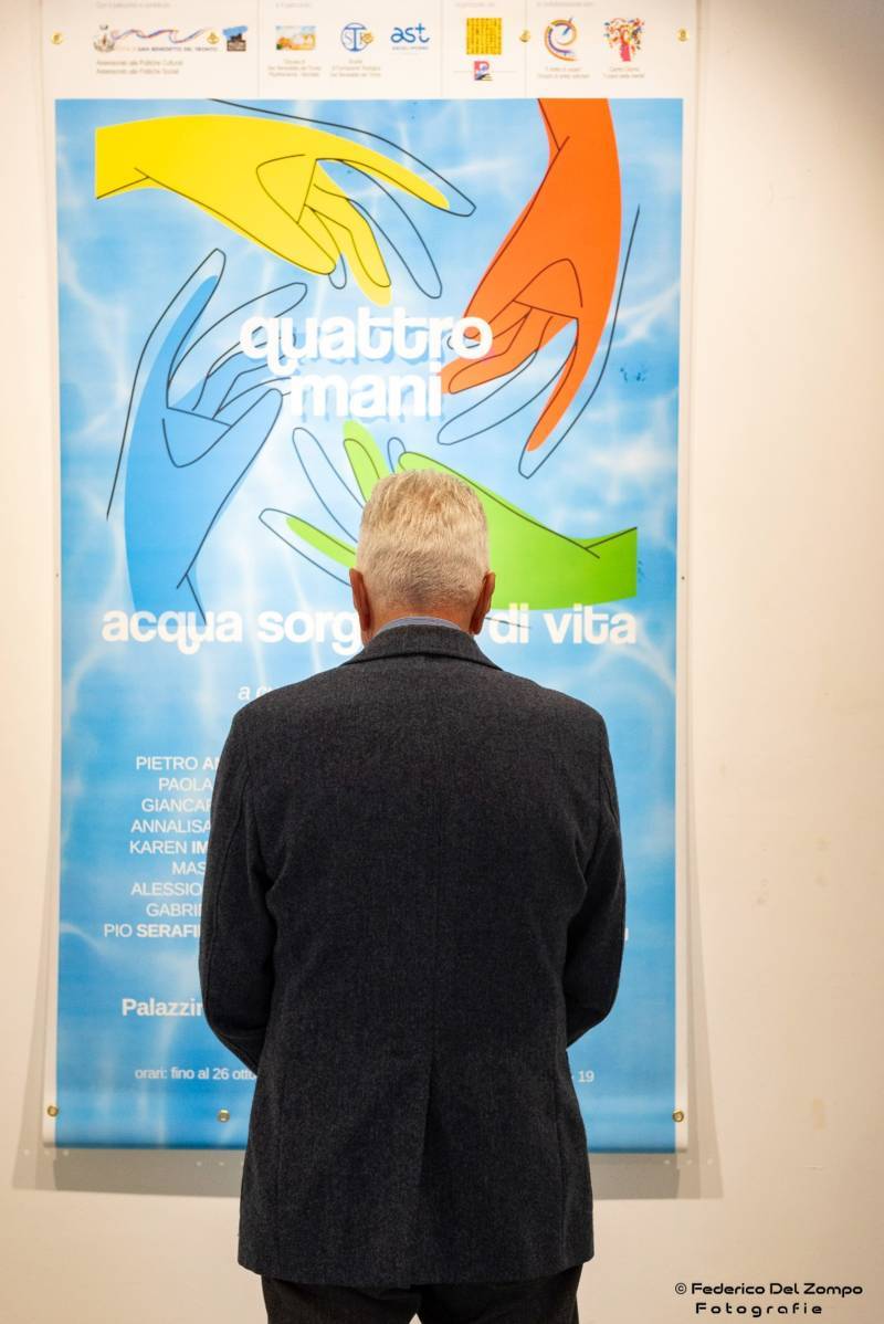 Ringrazio il prof. Andrea Viozzi e l’Associazione Culturale “PescarArt & Co.” di Giancarlo Costanzo, curatori della mostra, e tutti gli attori di questa bellissima iniziativa: gli ospiti del Centro Diurno, ovvero gli outsider artists di questa mostra; coloro che lavorano alacremente all’interno del Centro; gli artisti del territorio che hanno lavorato fianco a fianco degli outsider artists e i volontari del Centro “I Colori delle Mente”, che hanno dato un grande contributo a questo lavoro congiunto. “Quattro mani” è il titolo della mostra, ma le mani che hanno dato un importante contributo sono molte di più! L’arte è uno strumento comunicativo per eccellenza che consente di dialogare con tutti. L’arte e l’inclusione sono i veri protagonisti di questa mostra. Il Comune è veramente grato alla comunità, che partecipa a questa rassegna.