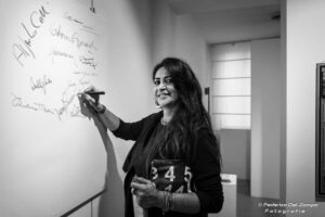 Questa mostra è nata più di un anno fa, quando ne ho parlato con l’assessora di allora, la prof.ssa Lina Lazzari, che subito accolse l’iniziativa, che poi è stata portata avanti in maniera splendida dall’attuale assessora Lia Sebastiani, che ci ha seguito da vicino e ci ha spronato anche a superare i piccoli ostacoli che di vota in volta si sono presentati. Le difficoltà sono intrinseche, legate al fatto di mettere insieme ventisei artisti diversi e far loro realizzare trentaquattro opere: è chiaro che non sia stato semplice. È stato tuttavia un viaggio appassionante.