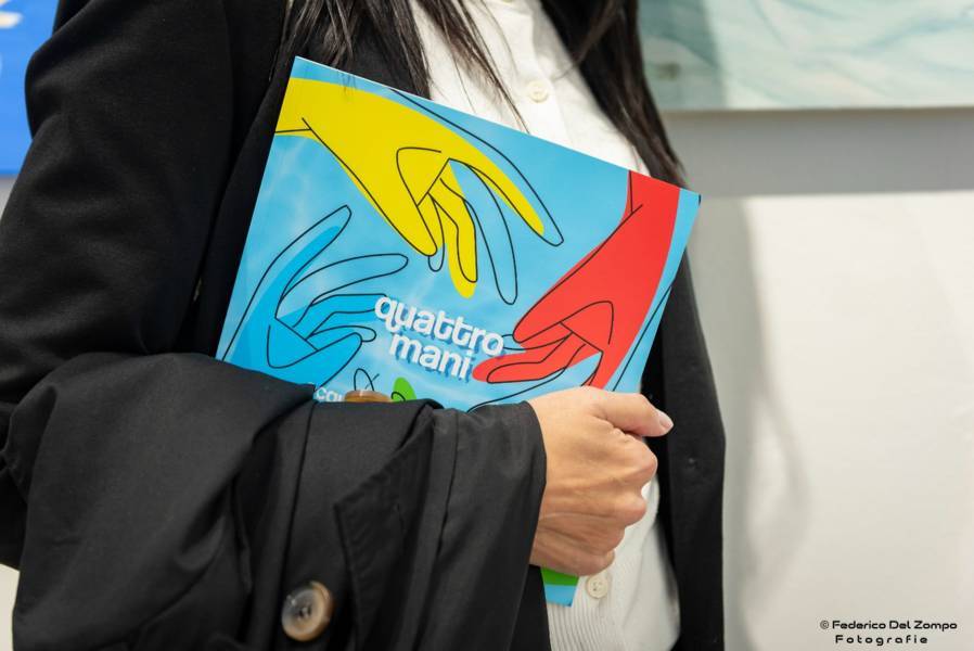 Curata dal docente e critico d’arte Andrea Viozzi, con la collaborazione dell’Associazione Culturale “PescarArt & Co.” di Giancarlo Costanzo, la rassegna ha coinvolto diciassette pittori del territorio rivierasco, piceno e del vicino Abruzzo, che hanno realizzato ciascuno una tela ispirata alle opere prodotte da nove outsider artists del Centro Diurno “I colori della mente” di San Benedetto del Tronto. È da queste quattro mani, che si trovano e danno vita ad un “dialogo” d’arte, fatto di condivisione non solo di creatività ma anche di sentimenti, che nasce il titolo della mostra.