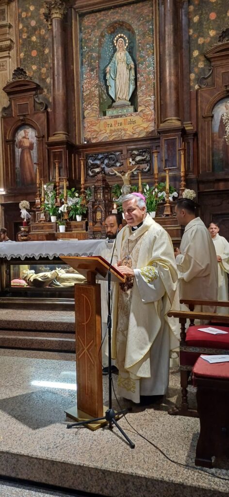 Di fronte ad una chiesa gremita di fedeli, che hanno voluto partecipare e condividere questo momento di gioia con i Frati Cappuccini, il Vescovo Palmieri si è rivolto a Fra Brice ricordando che “siamo nulla, ma che se viviamo con gioia affidandoci a Dio possiamo vivere liberi. Troppo spesso noi uomini crediamo di essere qualcuno o qualcosa.