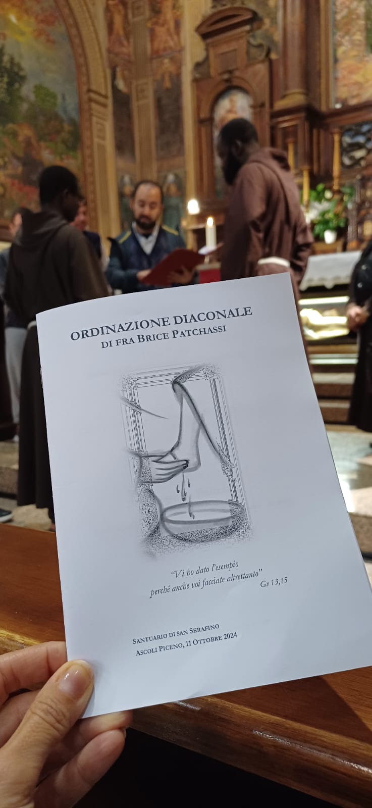 DIOCESI – La Diocesi di Ascoli Piceno ha un nuovo diacono. Si tratta di Fra Brice Patchassi originario del Togo, in Africa, e frate cappuccino della Custodia del Benin. A presiedere il rito, che si è svolto oggi alle 18.00 presso il Santuario di San Serafino da Montegranaro ad Ascoli Piceno, è stato il Vescovo Gianpiero Palmieri che ha detto: “Oggi ricevi il dono più bello, quello dello Spirito Santo. Un dono grande, che ti rende capace di servire i tuoi fratelli e la tua comunità”.