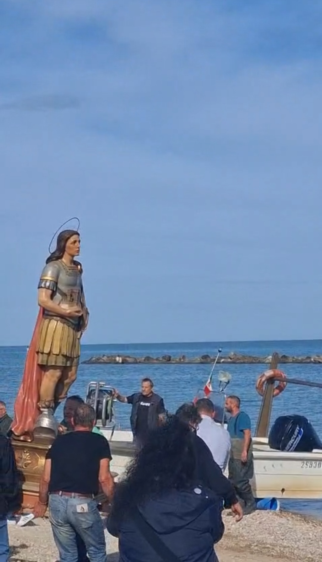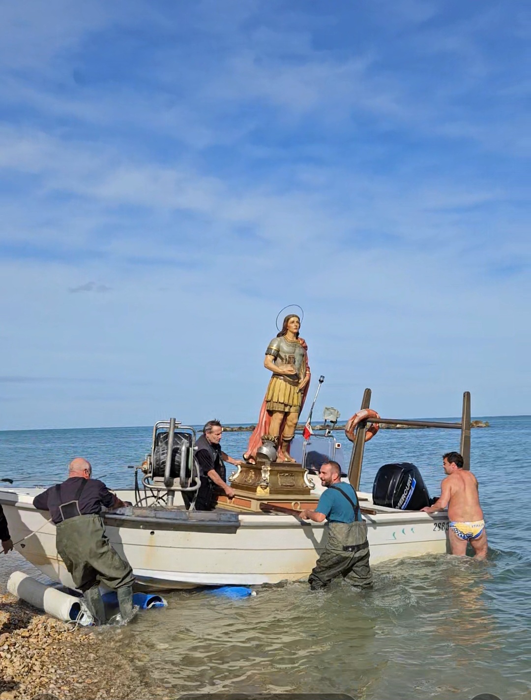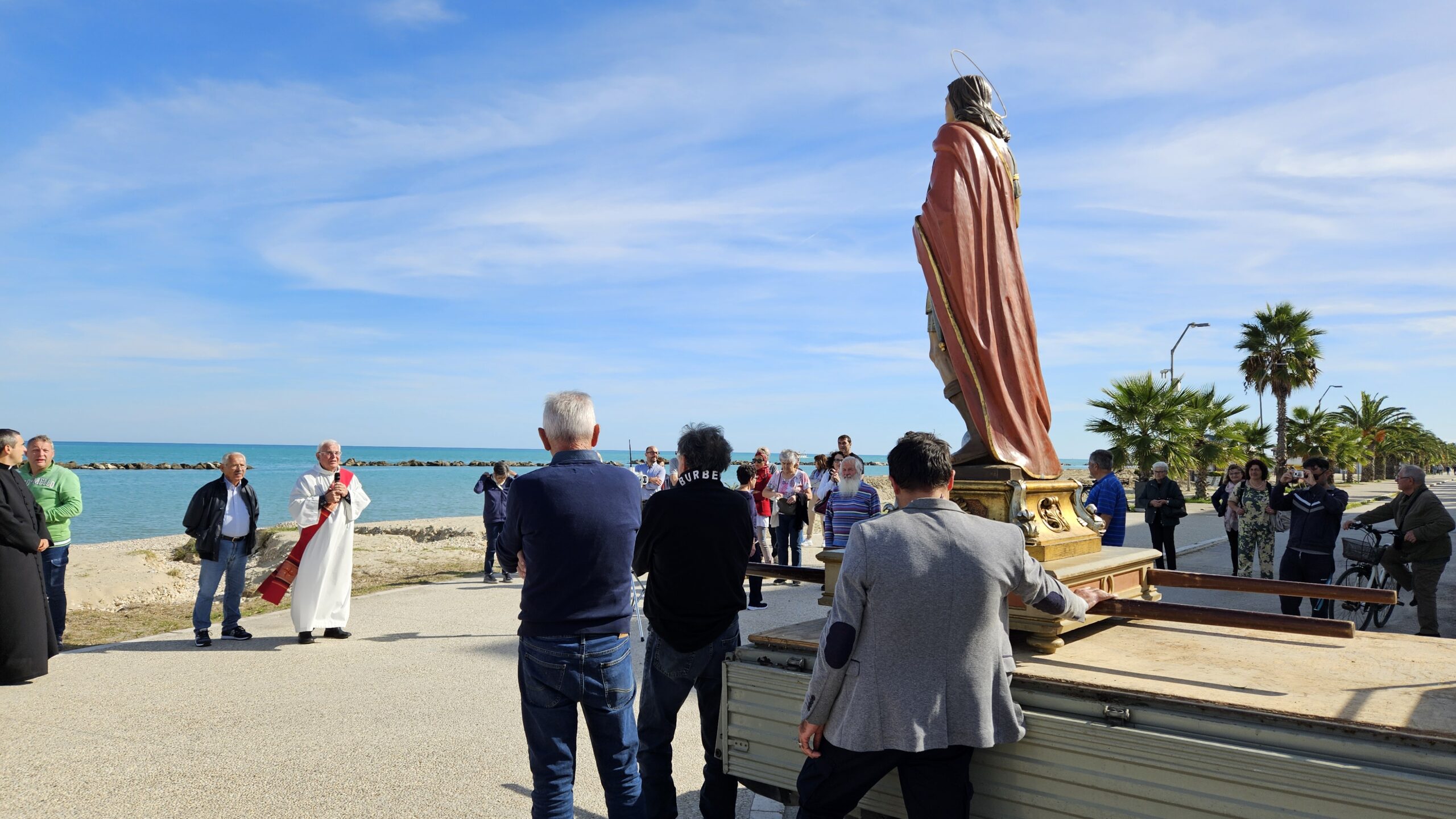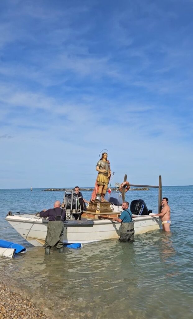 Quando la statua del Santo è stata caricata su una vongolara addobbata a festa, pronta per dirigersi verso San Benedetto del Tronto, il suono della sirena dell’imbarcazione ha riecheggiato nell’aria, seguito da un fragoroso applauso dei presenti a riva, segnando l’inizio della navigazione.