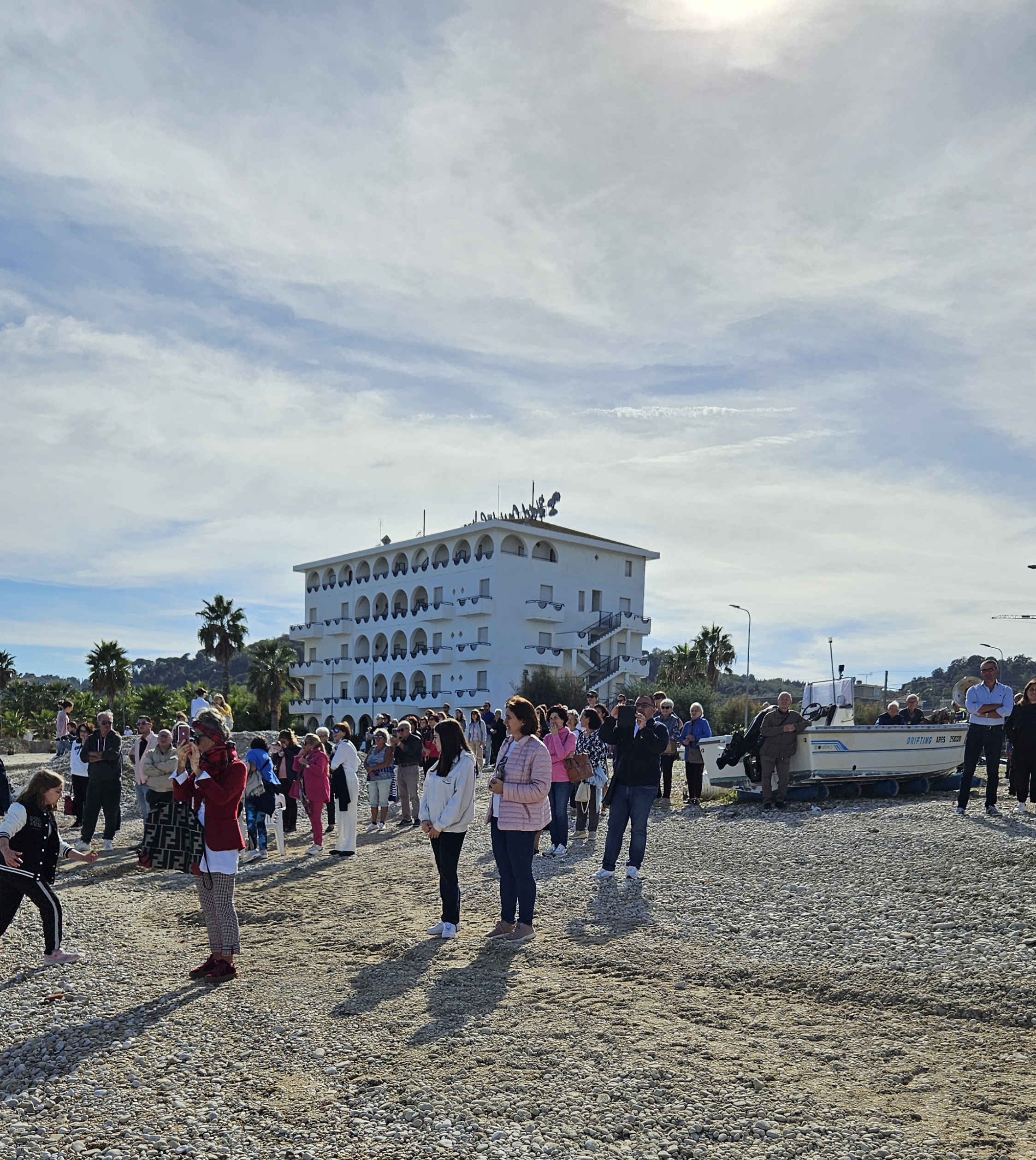 La vongolara, scortata da altre imbarcazioni, ha creato una processione marittima, una delle quali trasmetteva canti e inni religiosi attraverso gli altoparlanti. Una velata commozione ha pervaso i fedeli cuprensi, lasciando un po’ di tristezza per la partenza del loro martire, ma con la certezza che San Benedetto li accoglierà con amore e devozione.