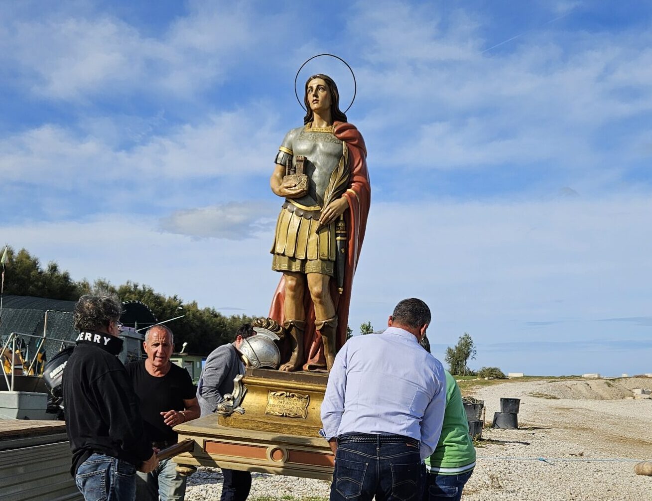 CUPRA MARITTIMA – Un momento carico di emozione: la partenza della statua di San Benedetto Martire da Cupra Marittima, diretta al porto di San Benedetto del Tronto. Intorno alle 14:00 di ieri, domenica 13 ottobre, la statua è stata prelevata dalla chiesa di San Basso e Santa Margherita a Cupra Marittima. “Per tre giorni la statua è rimasta presso la comunità di Cupra Marittima – ci ha spiegato il diacono Luciano Caporossi – e ora, come da tradizione, partirà via mare su una barca”, per giungere con il sindaco di Cupra Alessio Piersimoni e il parroco Don Roberto Traini fino al porto di San Benedetto.