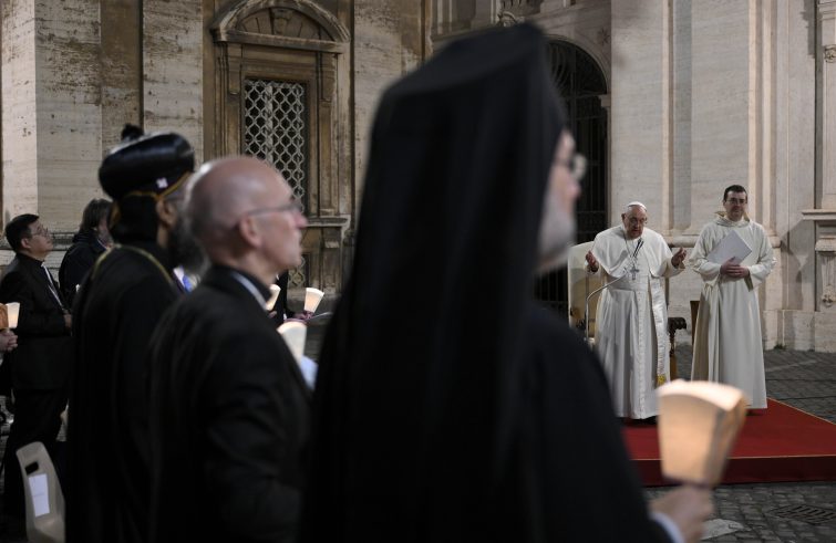 Nell’omelia della preghiera ecumenica con i partecipanti al Sinodo, data per letta, il Papa cita i padri del Concilio Vaticano II per ricordare che “il movimento ecumenico è nato dal desiderio di testimoniare insieme, con gli altri e non lontano gli uni dagli altri, o peggio ancora gli uni contro gli altri”. “In questo luogo i Protomartiri ci ricordano che oggi, in molte parti del mondo, cristiani di diverse tradizioni danno la vita insieme per la fede in Gesù Cristo, vivendo l’ecumenismo del sangue”, il riferimento all’attualità: “La loro testimonianza è più forte di qualsiasi parola, perché l’unità viene dalla Croce del Signore”.