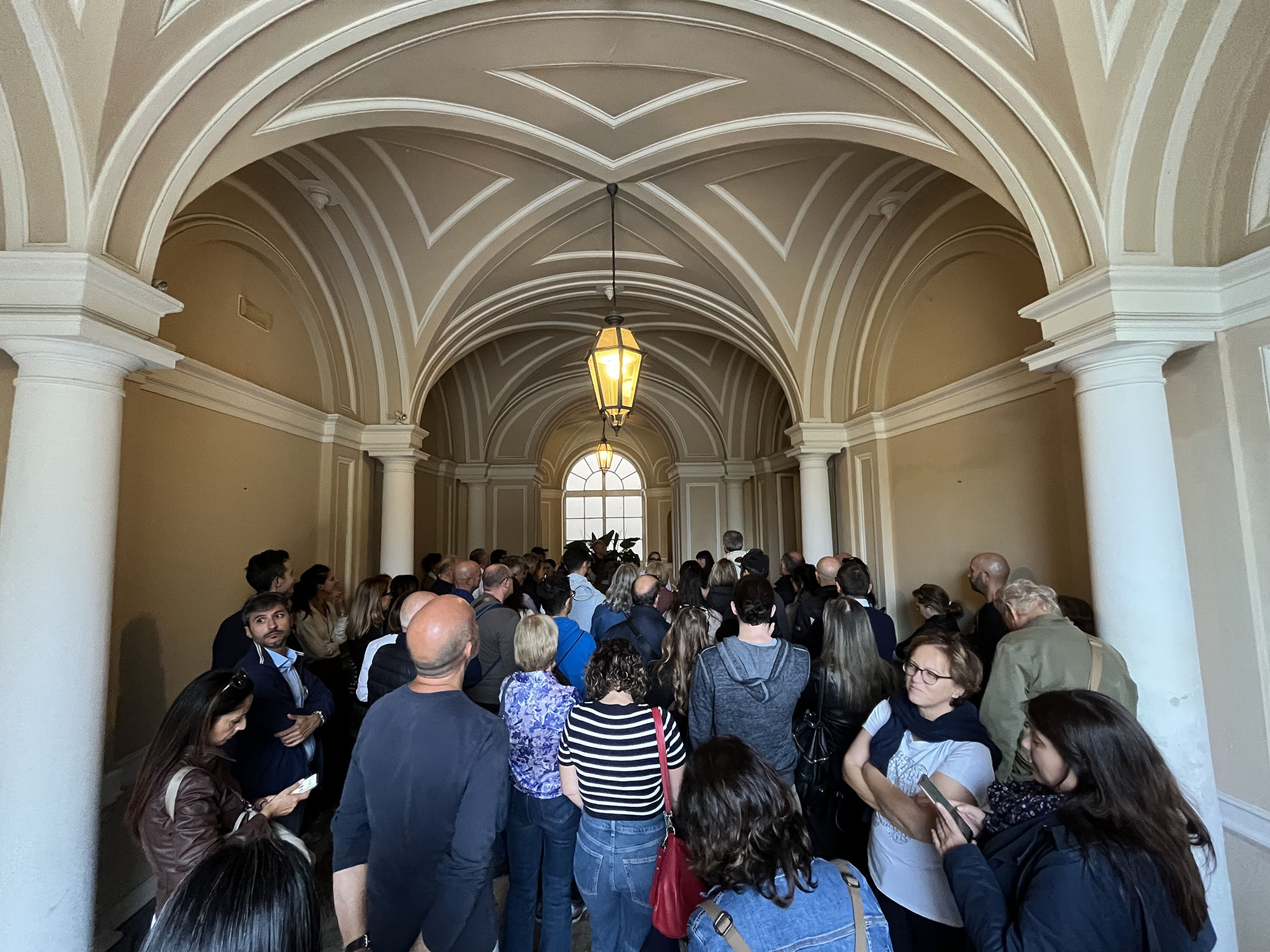 Un vero e proprio “assalto” quello a Villa Vinci Boccabianca, dimora nobiliare circondata da un ampio parco a pochi passi dal mare, bene di proprietà privata e normalmente aperto solo per cerimonie ed eventi speciali: nella giornata di domenica (unico giorno di apertura) le file di visitatori non si sono mai interrotte, raggiungendo il culmine nel pomeriggio. Grazie all’impegno dei volontari FAI e degli Apprendisti Ciceroni tutti hanno potuto visitare questo bene così suggestivo, con una prima parte dedicata al parco, al giardino e alle strutture esterne, e una seconda parte dedicata al “piano nobile” della villa, con gioielli come la sala da pranzo affrescata nel 1888 da Annibale Brugnoli. Ciliegina della giornata, l’esibizione musicale di alcuni dei Ciceroni nel corridoio monumentale della villa.