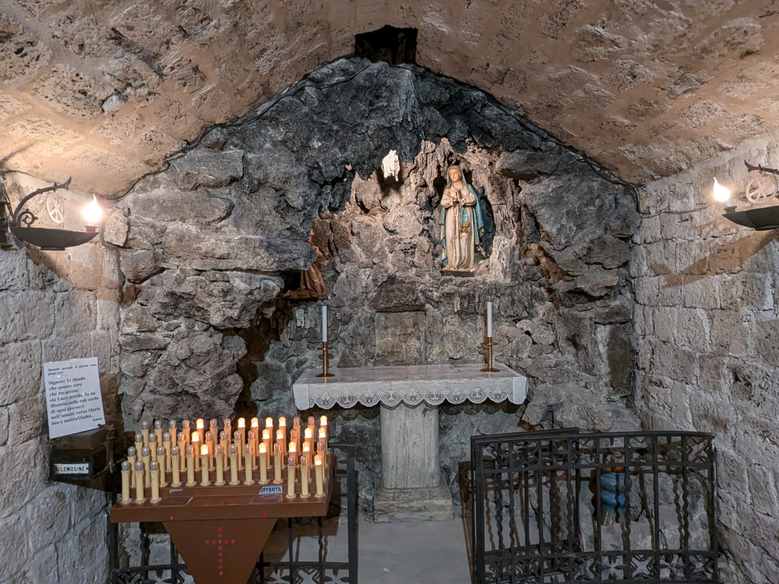 Il riferimento, in questo caso, è al locale ipogeo di San Giacomo, dove negli anni Settanta don Fabiani fece realizzare una replica della grotta di Lourdes. Da quel momento si è sviluppata una forte devozione alla Madonna, che si rinnova a febbraio con le tradizionali “15 visite” a Maria.