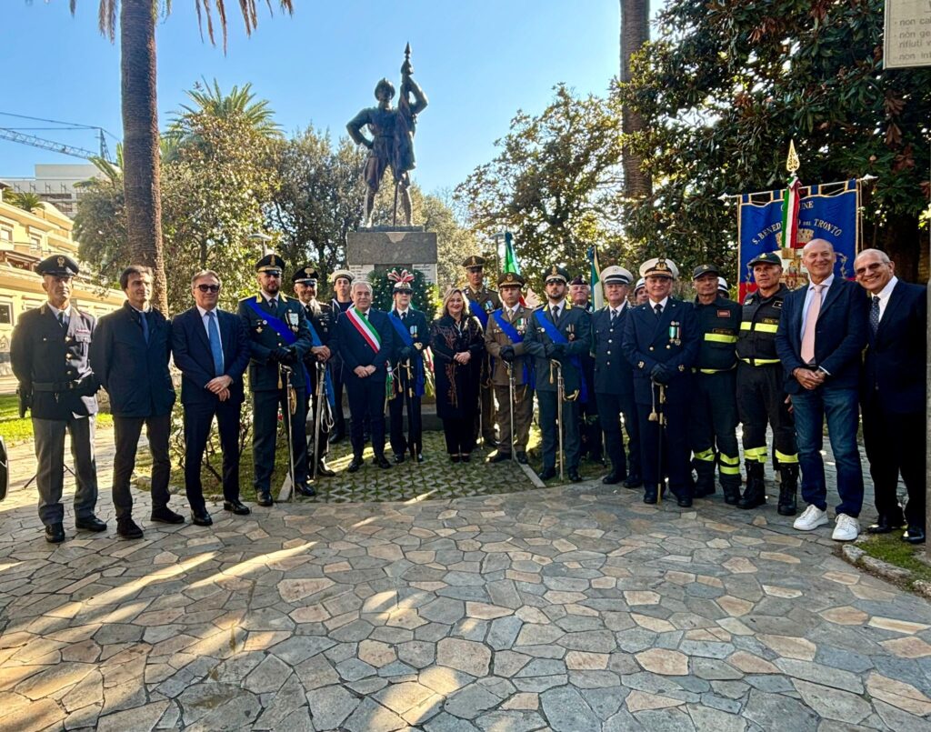SAN BENEDETTO DEL TRONTO – Nel giorno del 4 novembre dedicato alla celebrazione dell’Unità Nazionale e festa delle Forze Armate, alla presenza dei rappresentanti delle forze dell’ordine e delle forze armate, delle associazioni combattentistiche e d’arma, delle istituzioni e dinanzi ai cittadini, il sindaco Antonio Spazzafumo, il sottosegretario al Ministero dell’Economia on. Lucia Albano e la comandante della Capitaneria di Porto, capitano di fregata Alessandra Di Maglio, hanno deposto una corona dinanzi alla statua del milite della Grande Guerra.