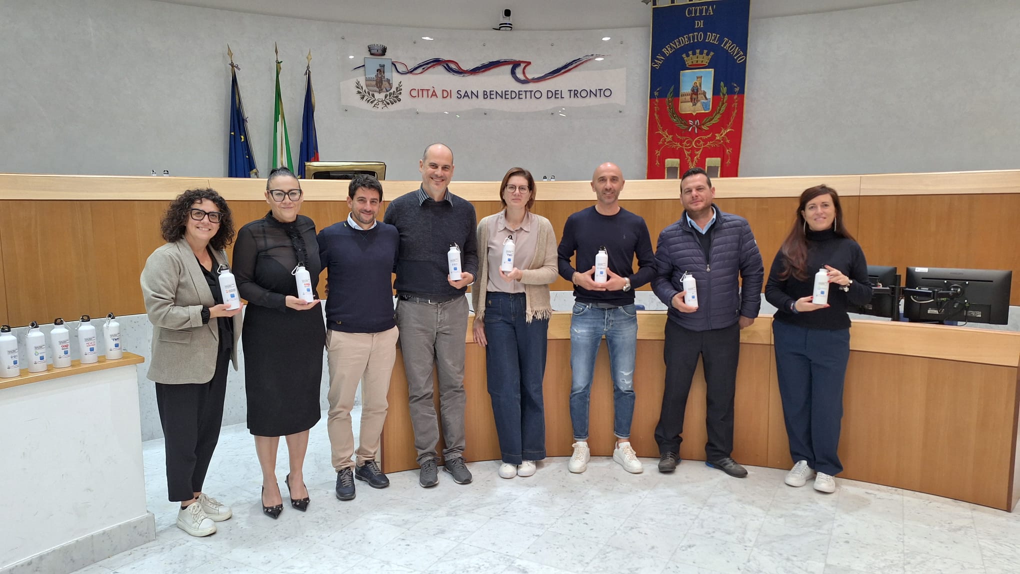Il logo è stato stampato su delle borracce termiche che sono poi state donate agli alunni di tutte le scuole d’infanzia e primarie di San Benedetto, quale omaggio simbolico e strumento educativo per trasmettere un messaggio di amore e rispetto per l’ambiente.