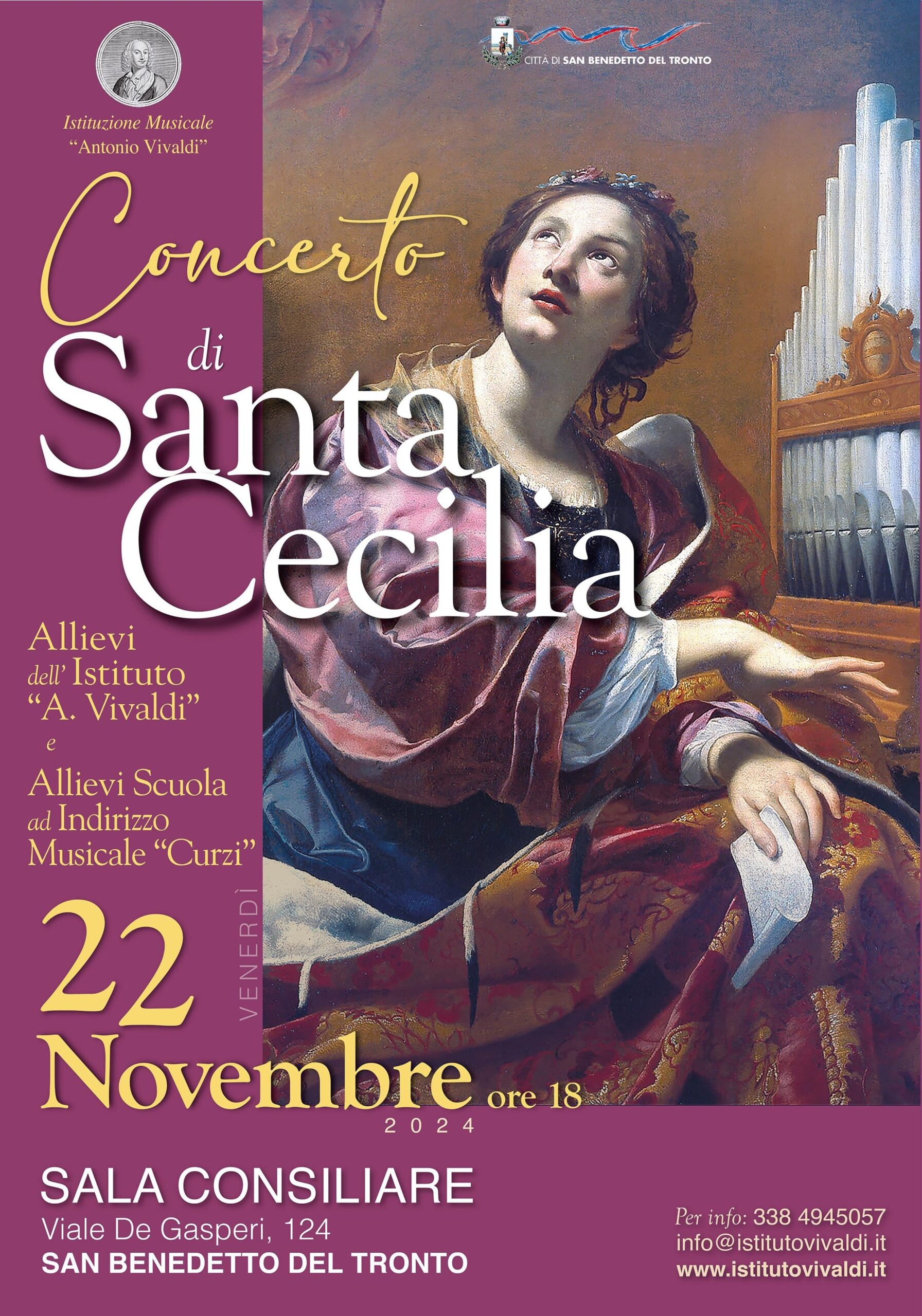 L’appuntamento vuol celebrare la Santa patrona ma anche essere un’occasione per festeggiare l’avvio di un nuovo momento storico per l’Istituzione “Vivaldi” che, oltre a vantare un’offerta formativa di altissimo profilo in qualità di accademia musicale, si afferma come punto di riferimento del territorio con eventi e spettacoli organizzati in collaborazione con le diverse realtà culturali, sambenedettesi e no.