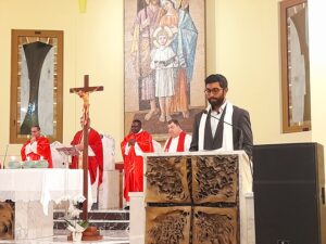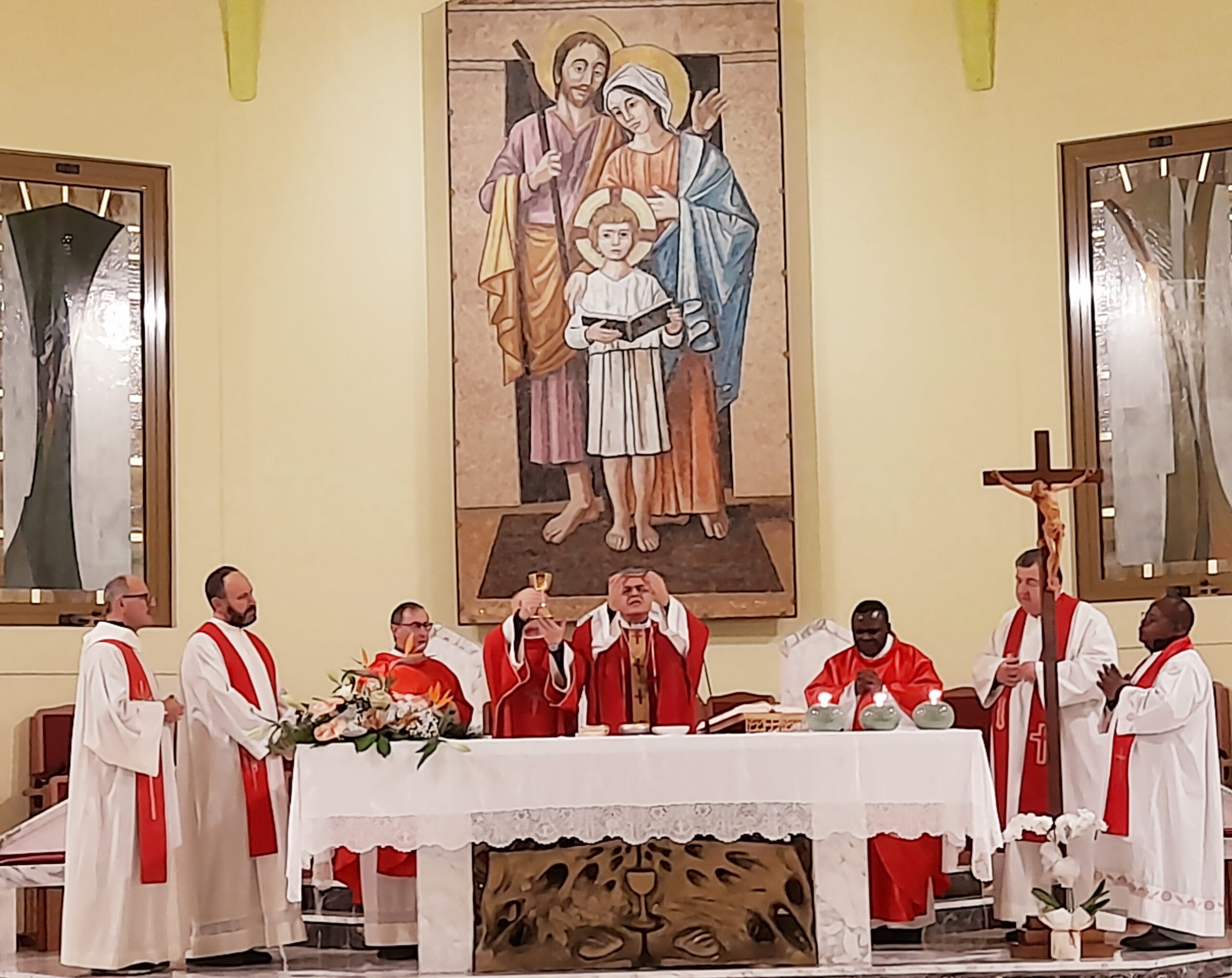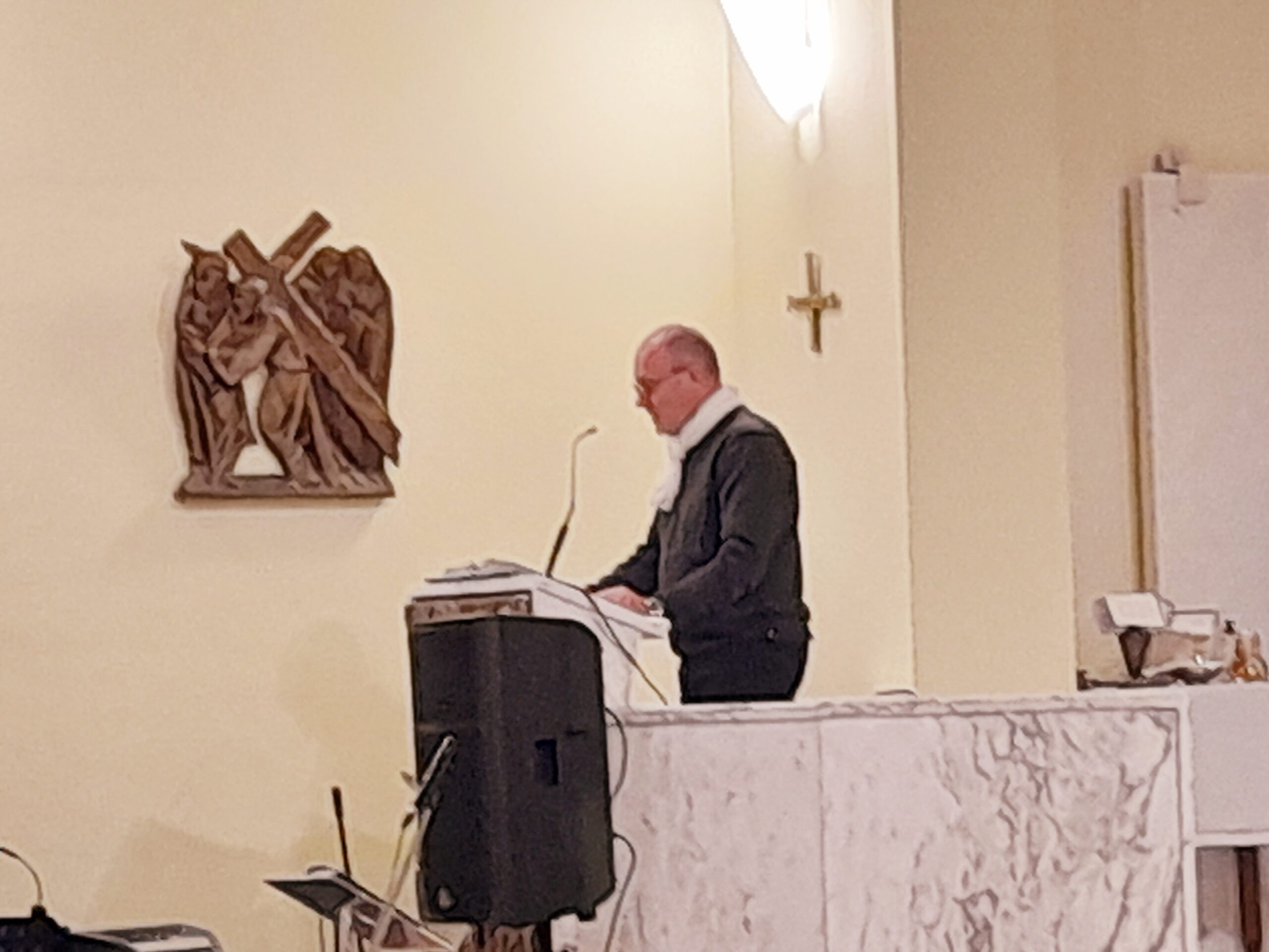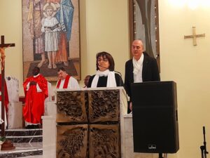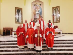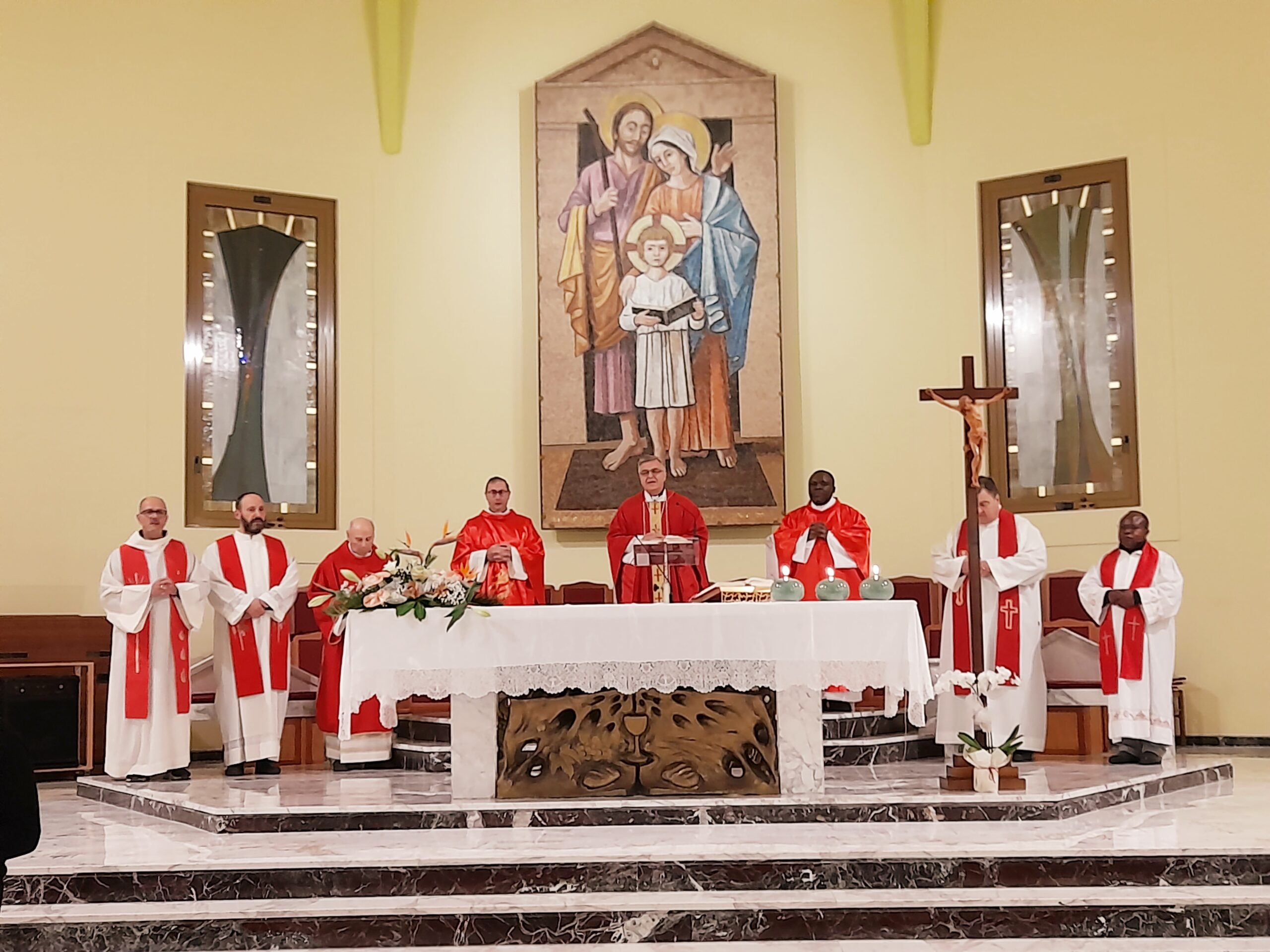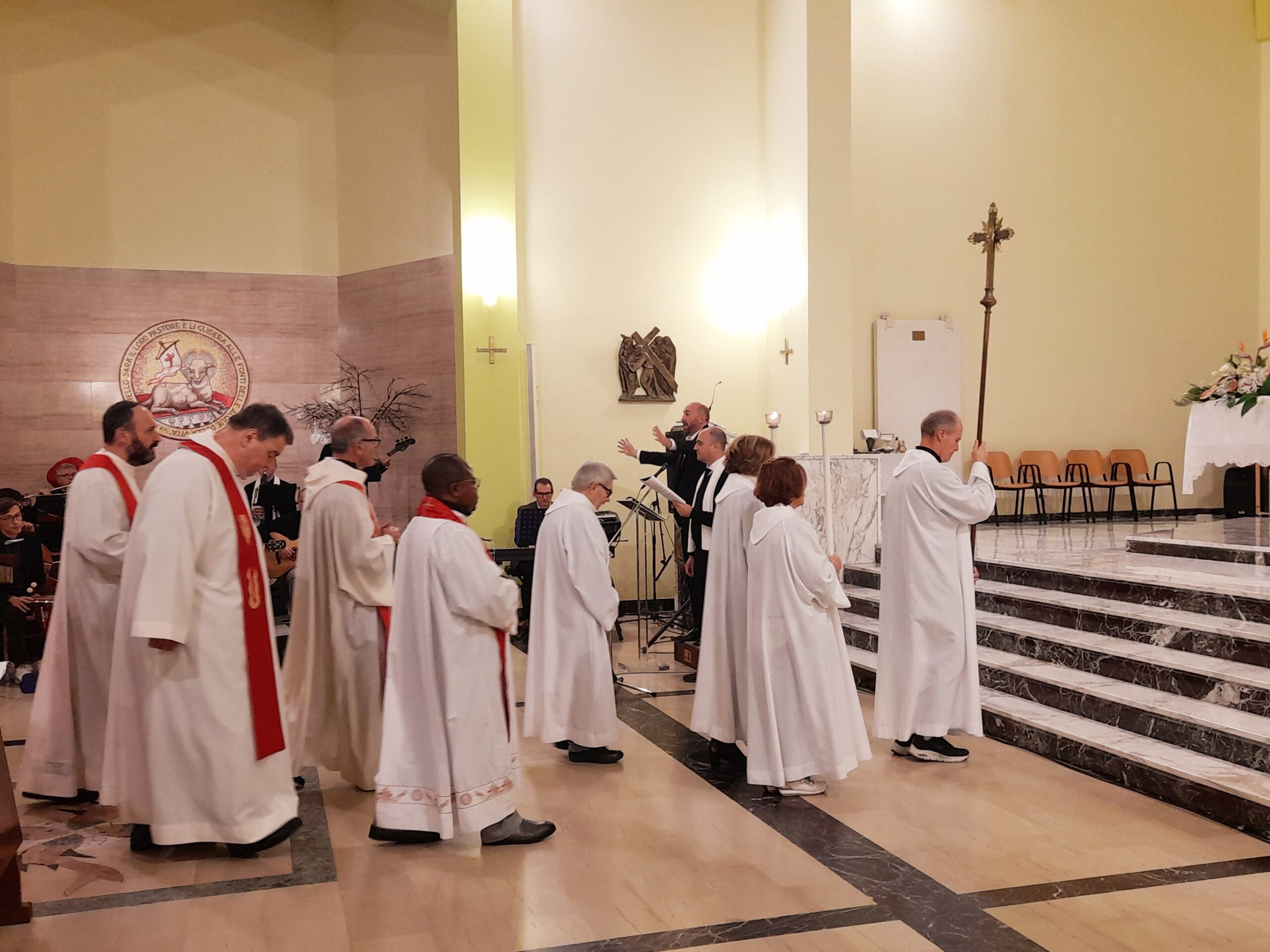 La prima parte della serata è stata caratterizzata dalla Santa Messa, presieduta dal vescovo Palmieri e concelebrata, oltre che dal numeroso popolo di Dio convenuto per l’occasione, anche da alcuni sacerdoti e diaconi della Vicaria: don Francesco Ciabattoni, don Albert Kalafula e Pierluigi Grilli, rispettivamente parroco, assistente parrocchiale e diacono della comunità Sacra Famiglia, che ha ospitato l’evento; don Matteo Calvaresi, parroco dell’unità pastorale Sacro Cuore e Regina Pacis di Centobuchi; don Alfonso Rosati, parroco della comunità San Gabriele dell’Addolorata e Santa Maria Bambina di Villa Rosa; don Alfredo Rosati, parroco della comunità Santissima Annunziata di Porto d’Ascoli; don Juvénal Mukamba Lukumbusho, già assistente parrocchiale della comunità Sacra Famiglia, oggi rettore dell’Università Uvira nel Congo, che è tornato in visita nella parrocchia per un mese.