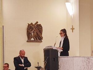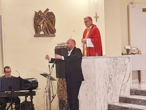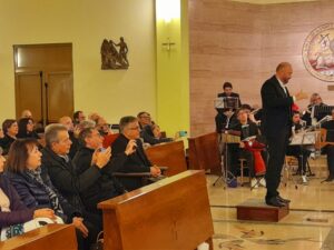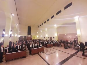 I coristi hanno poi intonato un canto per coro ed orchestra, che esprime l’essenza del servizio del cristiano, “Servo per amore”, del Gen Rosso, un brano popolare molto conosciuto dal pubblico presente che, sollecitato dal M° Laudi, ha partecipato al canto corale, con autentica fede e coinvolgente partecipazione.