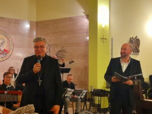 Al termine della serata il vescovo Gianpiero ha ringraziato tutti i presenti e, in particolare, i musicisti e i coristi che hanno eseguito il concerto. Il parroco don Francesco Ciabattoni ha voluto omaggiare i protagonisti della serata con un piccolo dono, segno di gratitudine per i bei momenti di armonia e comunione vissuti insieme.