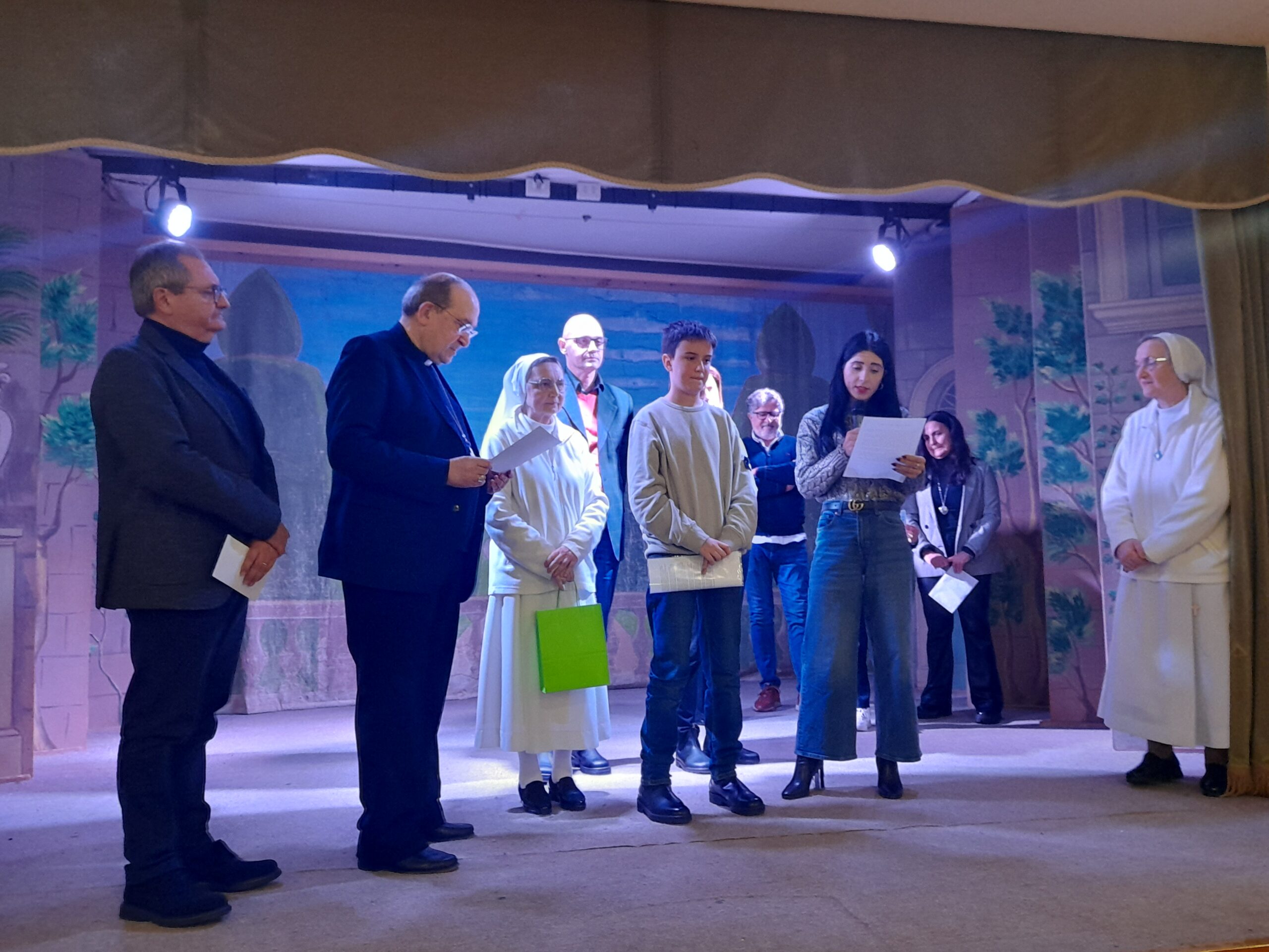 Il pomeriggio è proseguito con la consegna della XII Borsa di Studio “Generosi, solidali e rispettosi”. A premiare i due studenti meritevoli è stato il dott. Lugi Contisciani, il quale ha affermato: «Ringrazio il cardinale Petrocchi per le parole che ci ha donato in una sala silenziosissima, a dimostrazione del fatto che ci siamo riconosciuti in quello che ha detto: dentro le nostre famiglie comunichiamo poco, guardiamo la tv mentre ceniamo e non ascoltiamo i nostri figli mentre ci raccontano la giornata. Questi 280 anni di insegnamento, che le Suore portano avanti con fatica e coraggio, forse rappresentano un bene di cui essere veramente grati!