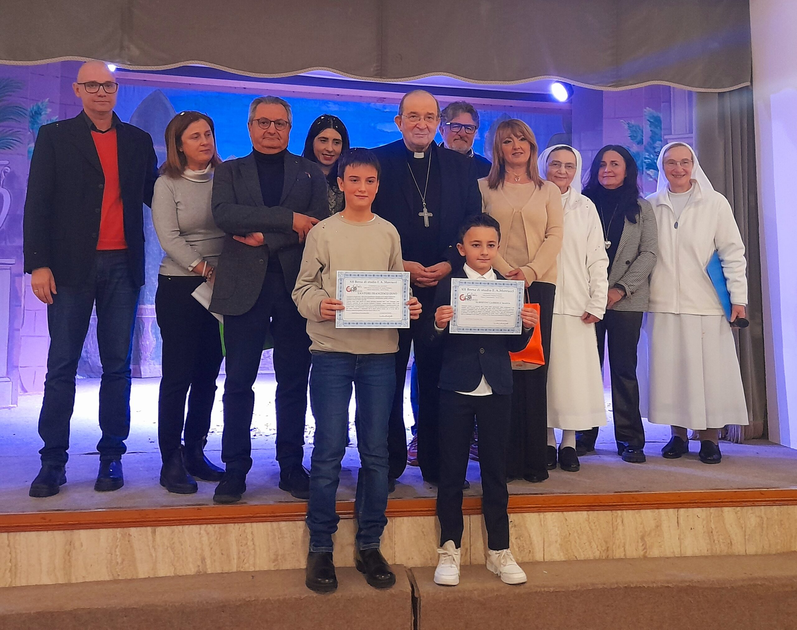 La maestra Maria Candida Celani ha premiato il piccolo Gabriele Maria Alberti, che frequenta il quinto anno della Scuola Primaria, con la seguente motivazione: «Abbiamo notato in Gabriele che i valori della generosità, della solidarietà e del rispetto sono cresciuti con lui negli anni della Scuola Primaria, in modo graduale, semplice e modesto. Come un fiore, egli alla luce e al calore degli insegnamenti della scuola e della famiglia, ha saputo con impegno aprirsi a Dio e agli altri, diffondendo il profumo di tanti piccoli gesti quotidiani di bontà. Senza ostentazione, ha saputo dare ai compagni il suo aiuto e si è posto al loro fianco nei momenti di difficoltà».