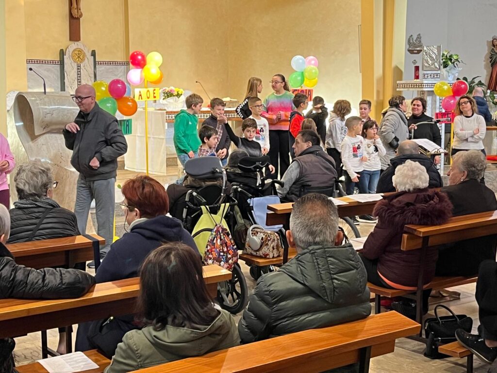 La giornata si è aperta con un’accoglienza speciale: palloncini colorati decoravano la chiesa, e i bambini del catechismo hanno dato il benvenuto ai nostri ospiti intorno all’altare, accompagnati da parole simboliche come FRATERNITÀ, GIOIA, AMORE e LIBERTÀ. Con i loro sorrisi genuini e il loro entusiasmo contagioso, i più piccoli hanno reso questo momento indimenticabile.