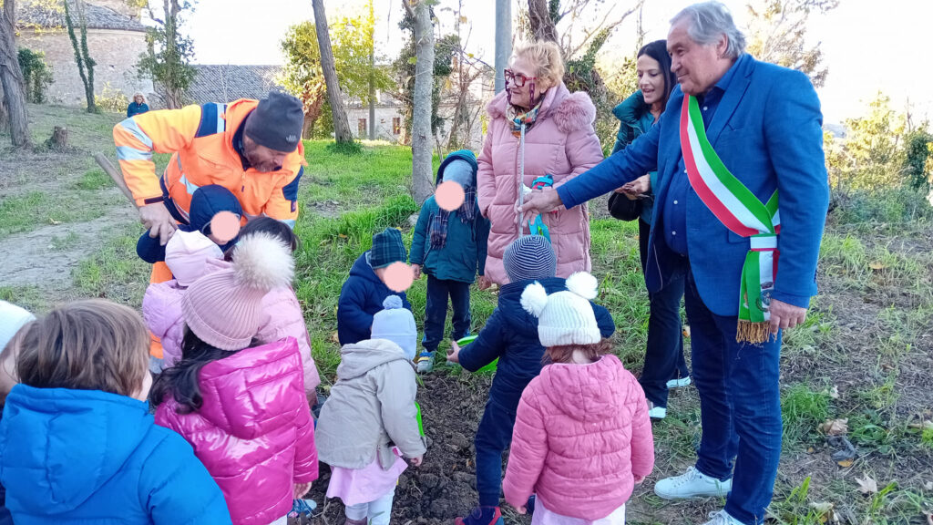 MONTELPARO – Si era già segnalato che nella prima decade di novembre a Montelparo, nella zona nord ovest antistante il Torrione, erano stati messi a dimora 13 nuovi alberi (un Liquidambar, un Ginkgo Biloba, due Pawlonie, un cedro Deodara e 7 piccoli castagni) acquistati in seguito al progetto “Verdi Ricordi”, una raccolta fondi finalizzata a creare un primo spazio verde dedicato a Cesare Massaccesi e a tutti coloro che ci hanno lasciato.