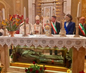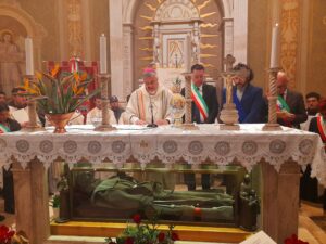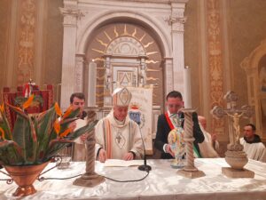 Al termine della Santa Messa, come di consueto, il primo cittadino Sergio Loggi e i sindaci e i rappresentanti delle altre Municipalità della Rete di San Giacomo hanno proclamato congiuntamente l’atto di affidamento al Santo, di cui hanno invocato la protezione sulla loro attività di governo. Per le Confraternite, invece, a leggere l’atto di affidamento al santo in rappresentanza di tutti i confratelli e le consorelle, è stato Guerino Reganatini, priore della Confraternita Maria Santissima del Suffragio di Colonnella.