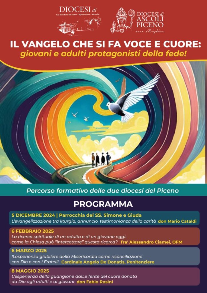 DIOCESI – La Diocesi di Ascoli Piceno insieme alla Diocesi di San Benedetto del Tronto – Ripatransone – Montalto, annunciano l’inizio di un nuovo itinerario formativo, rivolto a giovani, adulti e a tutti coloro che sono impegnati nella vita pastorale e comunitaria.