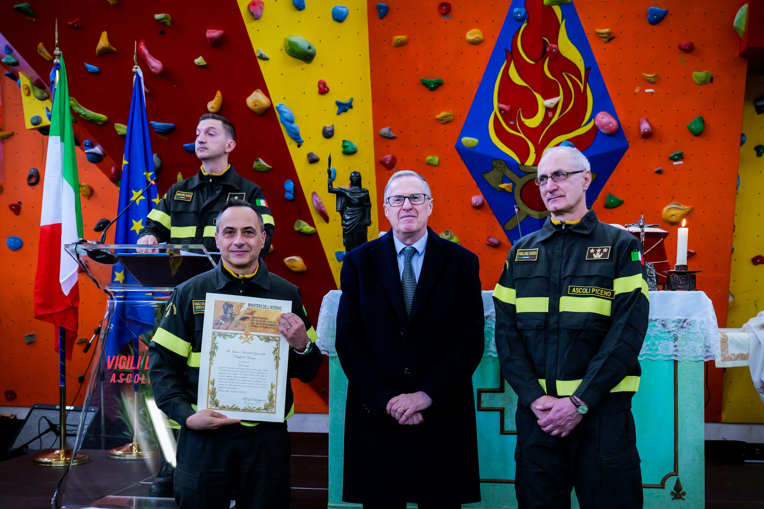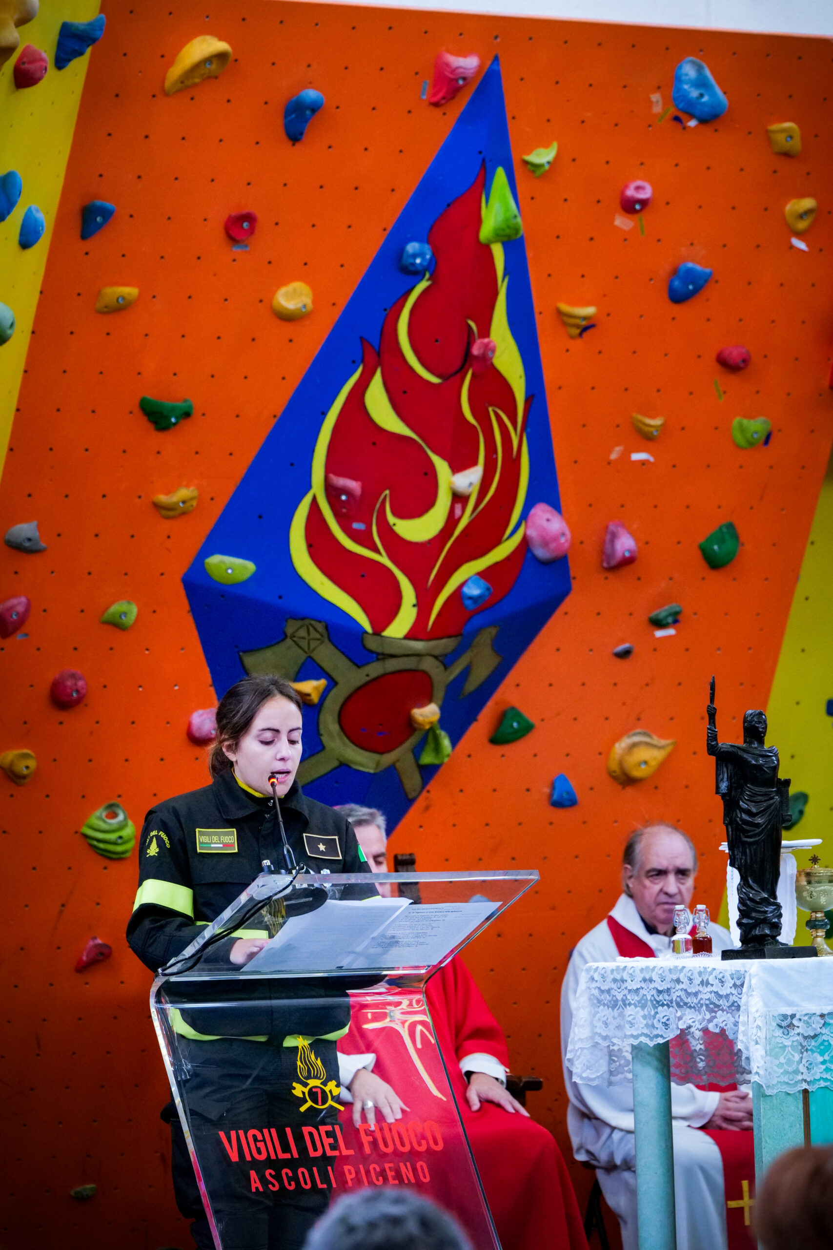 La giornata è iniziata con una celebrazione alle ore 9:30 presso la Caserma dei Vigili del Fuoco di Ascoli Piceno, sempre presieduta dal Vescovo Palmieri, per poi culminare nella messa delle 11:30 in Cattedrale. L’evento ha visto la partecipazione di numerosi fedeli e di alte autorità militari, politiche e civili, tra cui il Comandante della Capitaneria di Porto di San Benedetto del Tronto, Capitano di fregata Alessandra Di Maglio, il Prefetto di Ascoli Piceno Sante Copponi, il Comandante della Polizia Stradale Luca Iobbi, il Comandante provinciale dei Carabinieri Domenico Barone, il Commissario di San Benedetto Andrea Crucianelli, il Vice Comandante dei Vigili del Fuoco Roberto Paoletti, il Comandante della Guardia di Finanza Gianmarco Murro, l’Assessore Regionale Andrea Maria Antonini, il Sindaco Antonio Spazzafumo e il Consigliere Regionale Andrea Assenti.